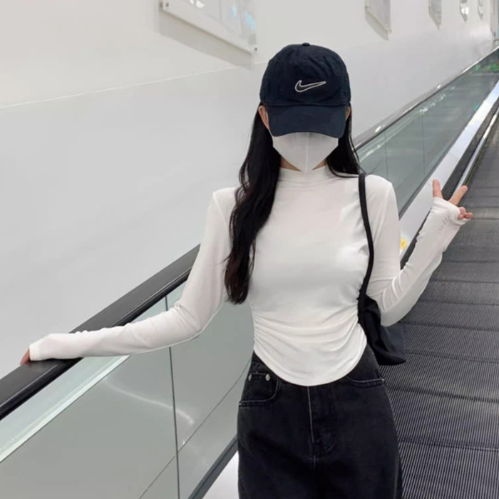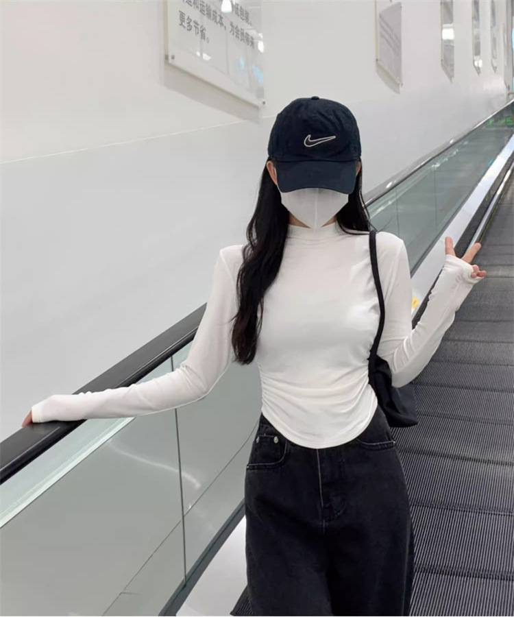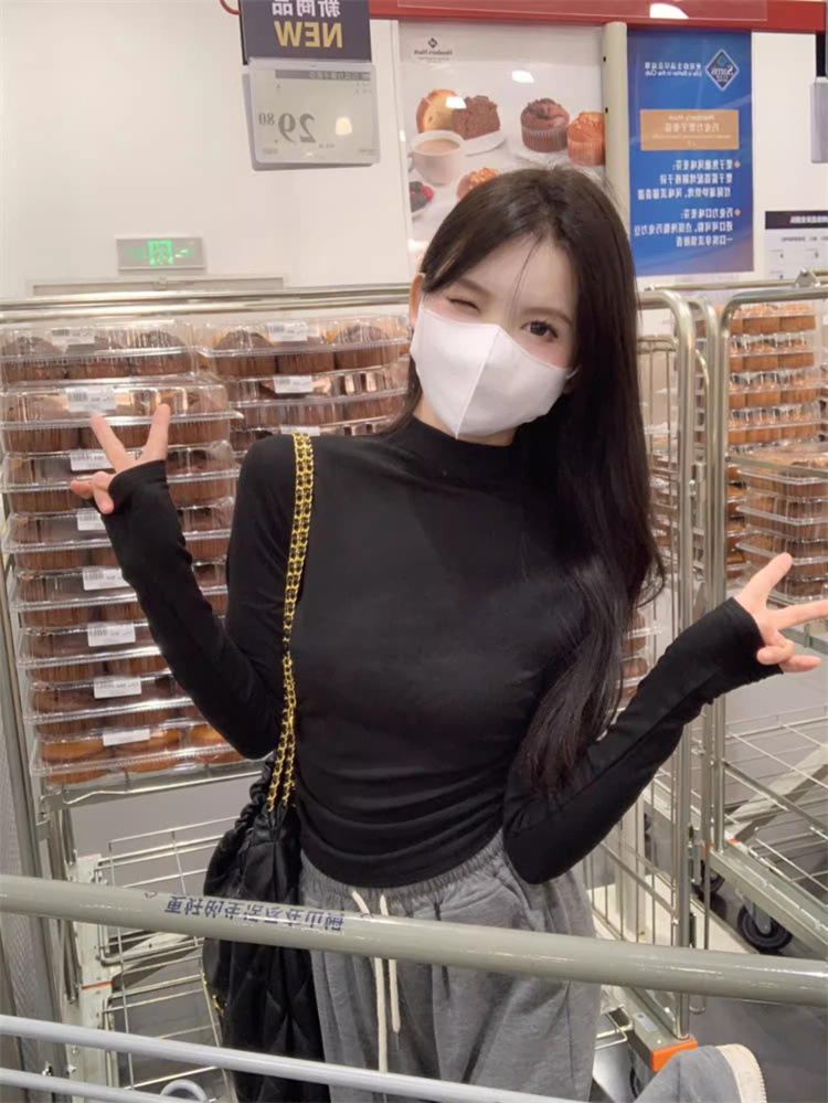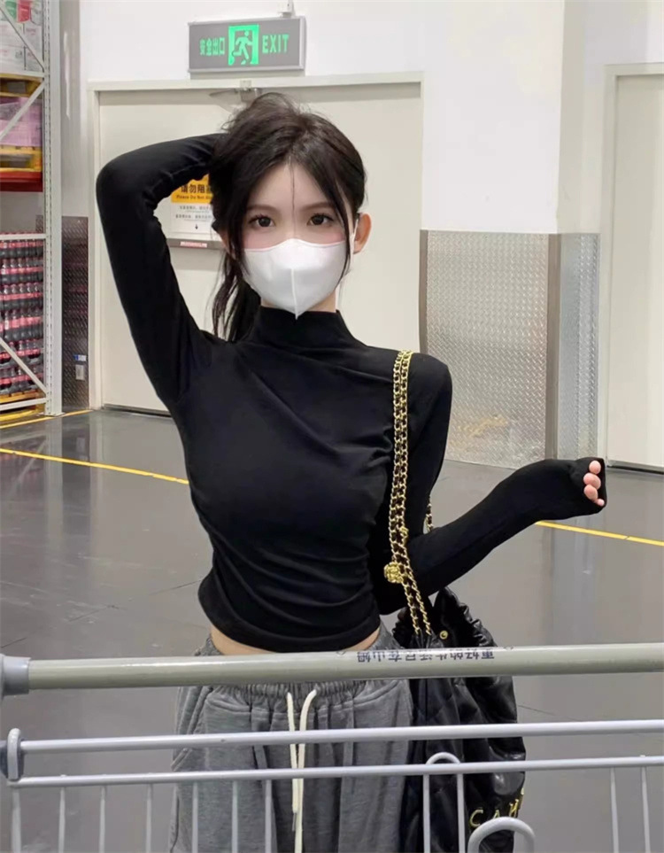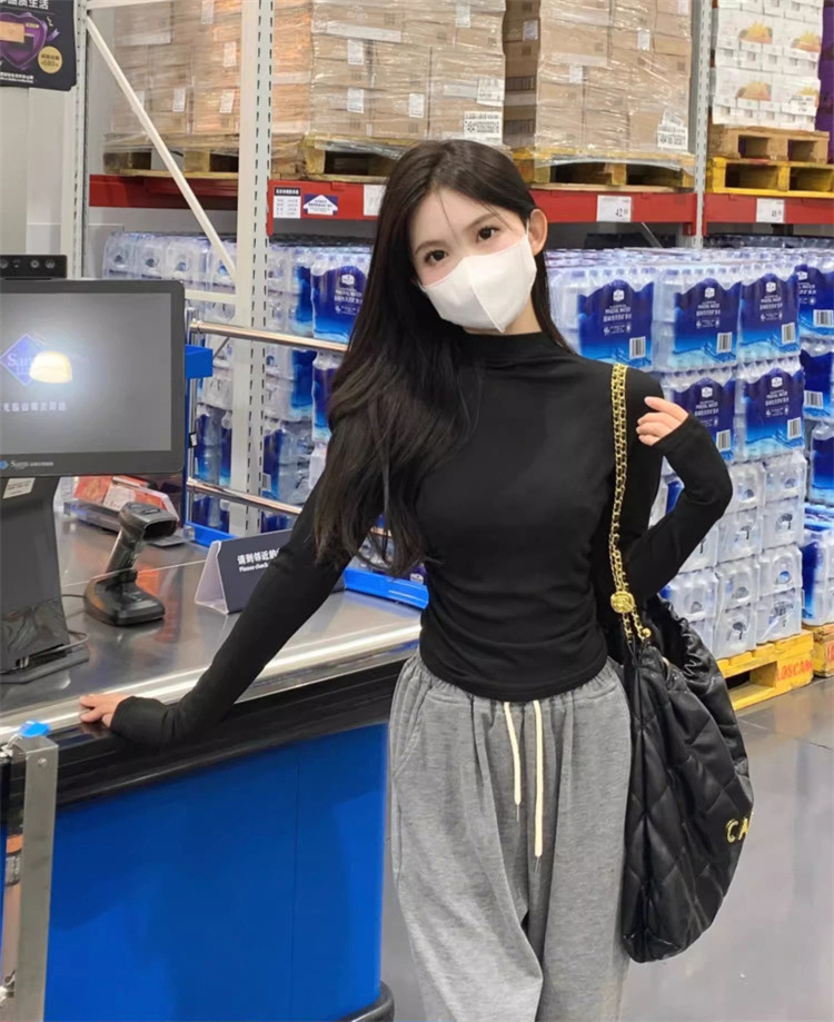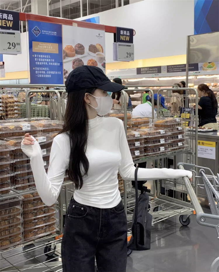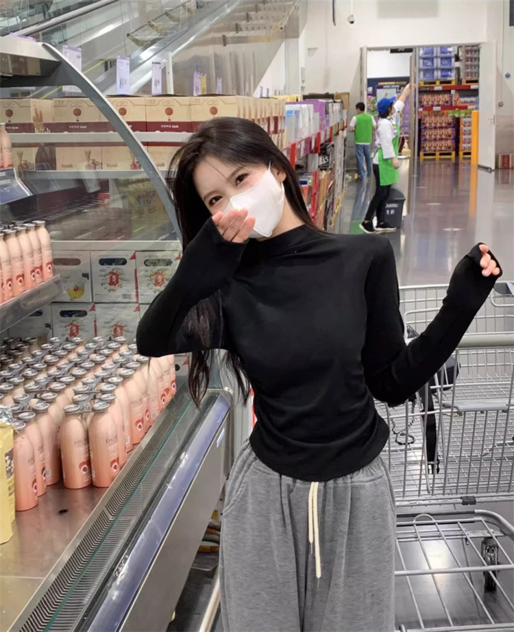 국경 도매 가을과 겨울 스레드 벨벳 세미 하이 칼라 따뜻한 슬림 기질 긴 소매 티셔츠 여성베이스 셔츠스토어 가기