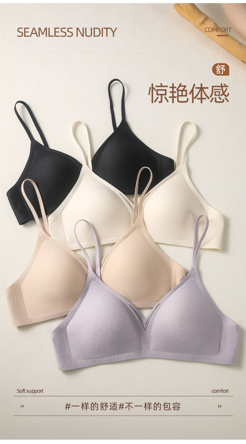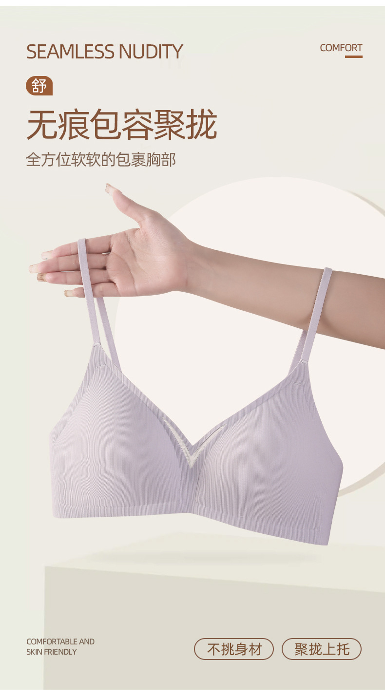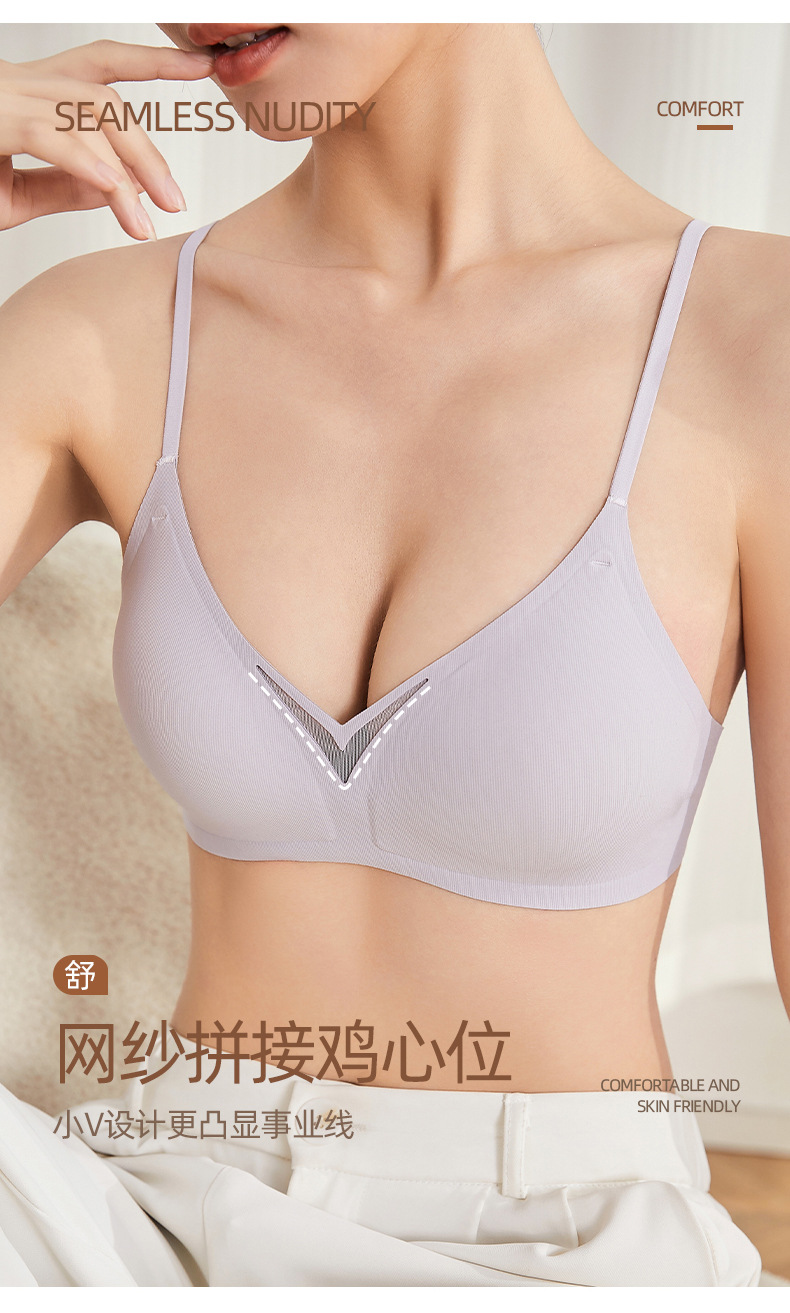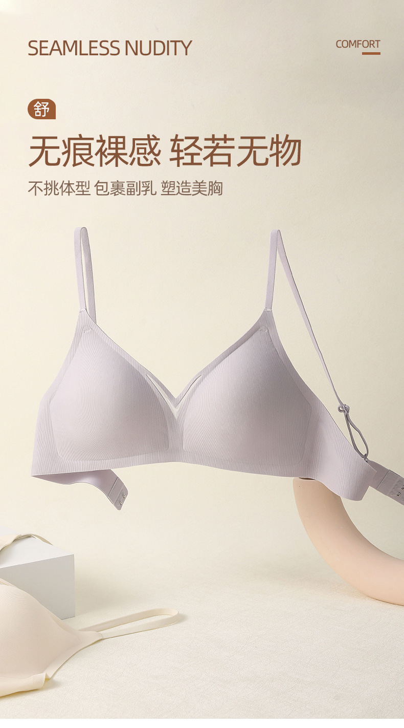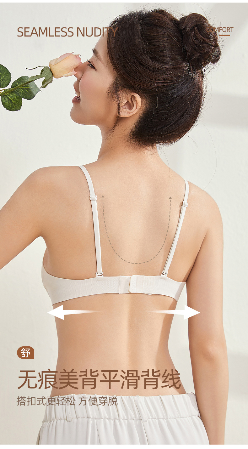 无痕内衣夏季薄款无钢圈小胸美背胸罩收副乳防下垂细肩带文胸女