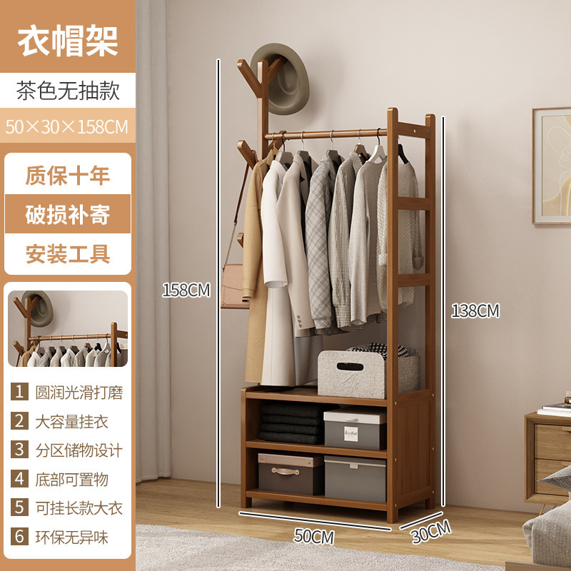 서랍이있는 간단한 코트 랙 다층 가정용 단단한 나무 옷걸이 바닥 걸이 침실 보관 랙 보관 캐비닛