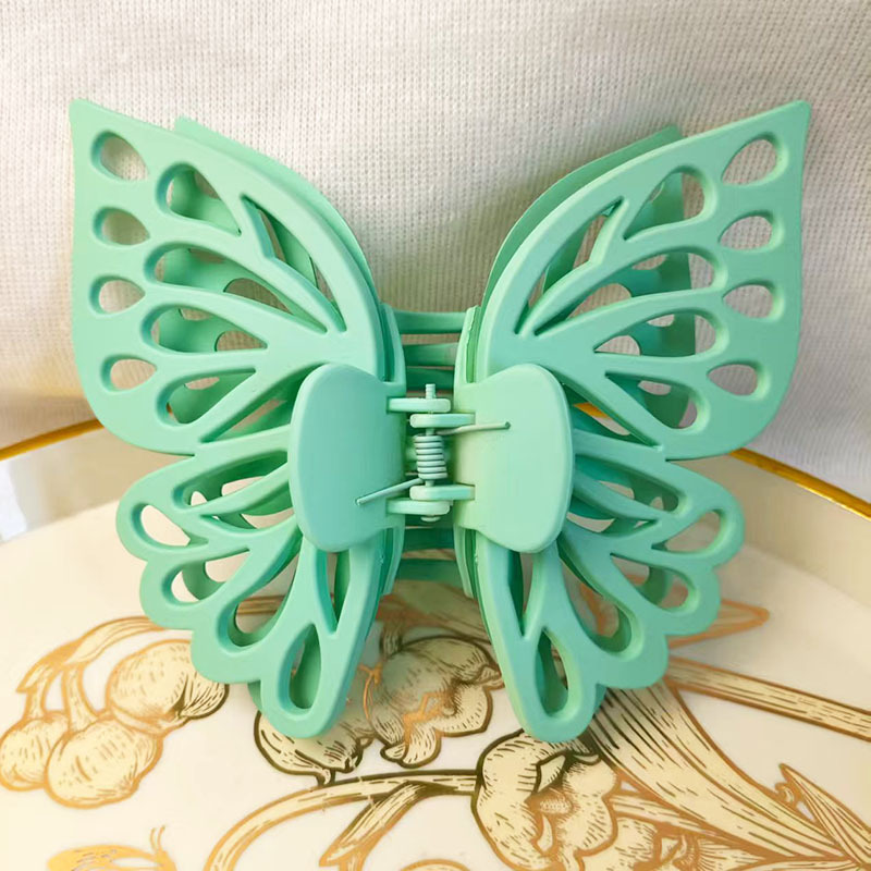 국경 대형 다채로운 나비 포니 테일 클립 상어 클립 헤어핀 여성 머리 반 묶은 얼굴 작은 클립 헤드웨어