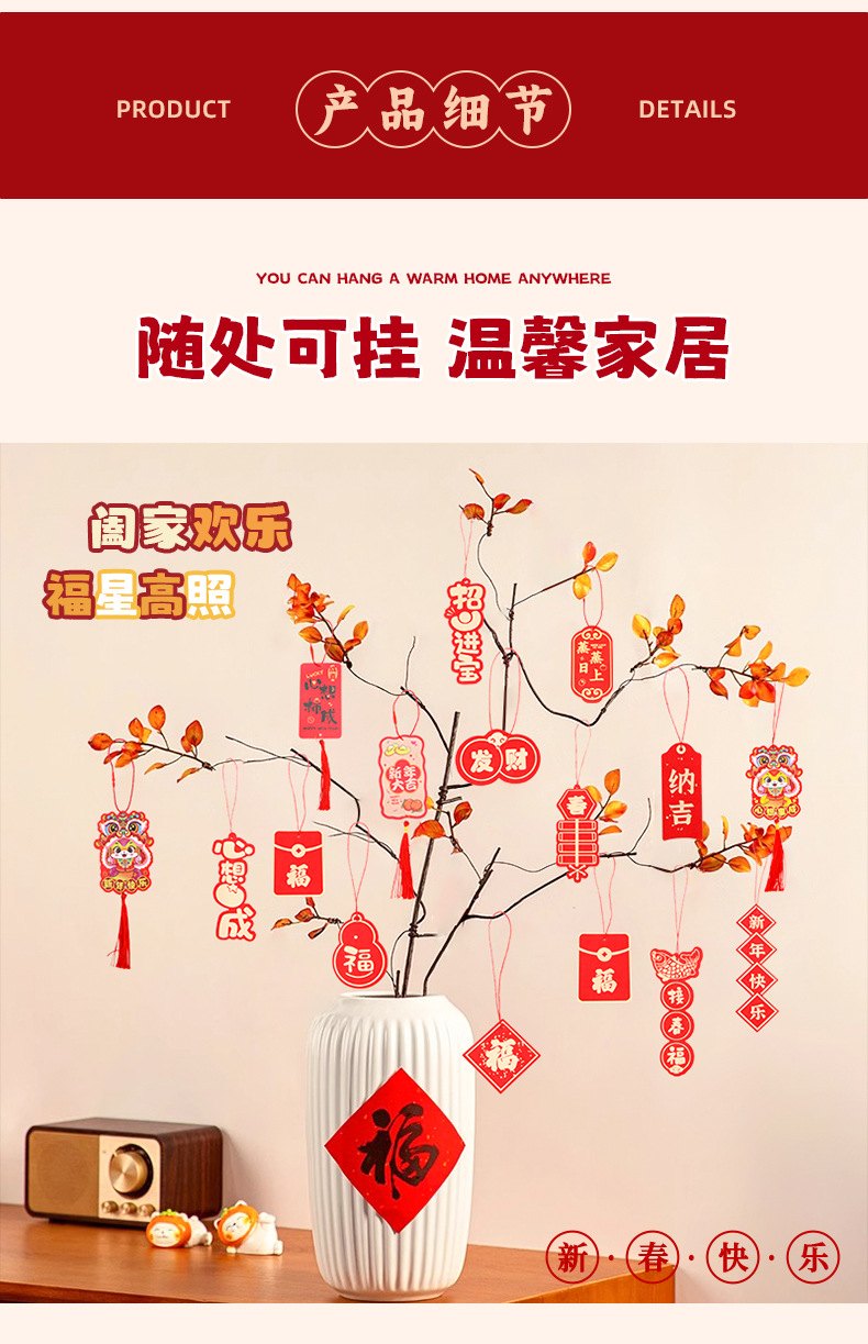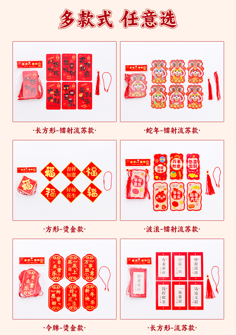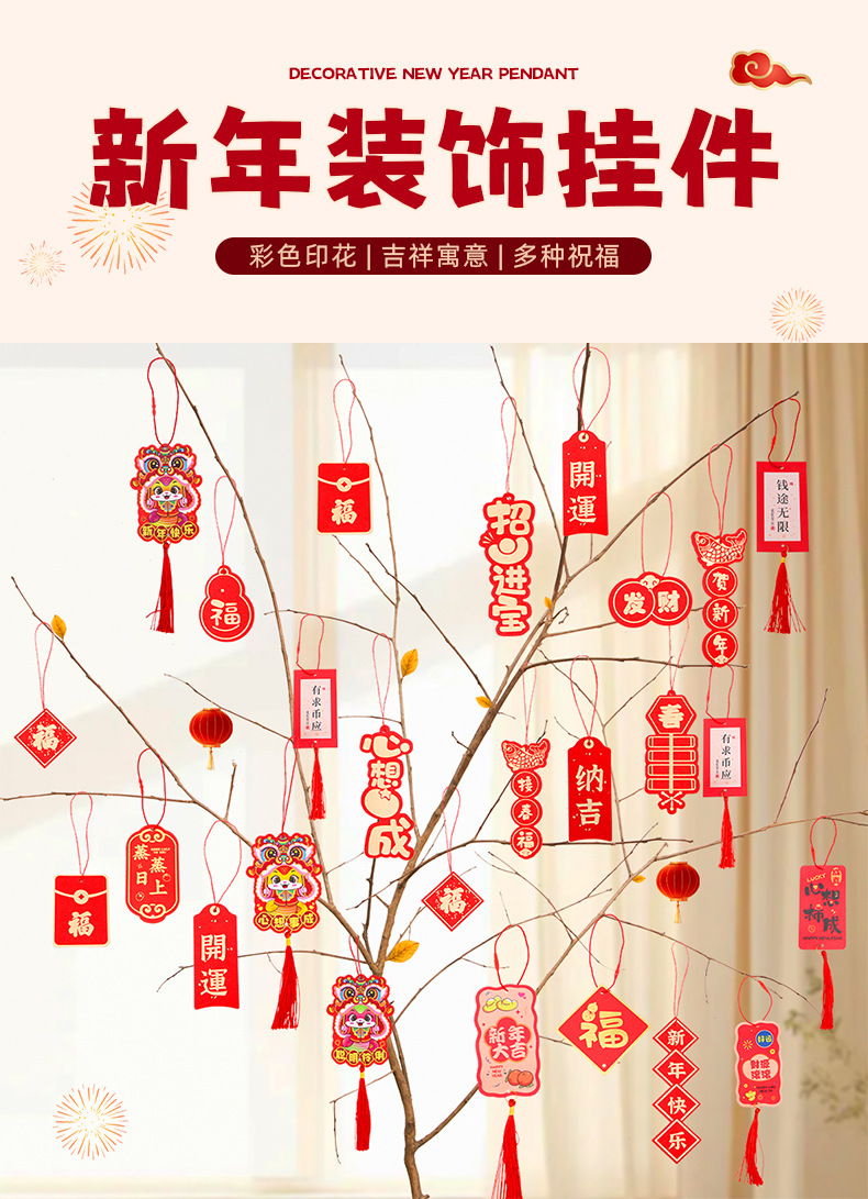 새해 장식 브론 징 펜던트 중국 스타일 봄 축제 축복 텍스트 화분에 매달린 술 펜던트 작은 선물 도매