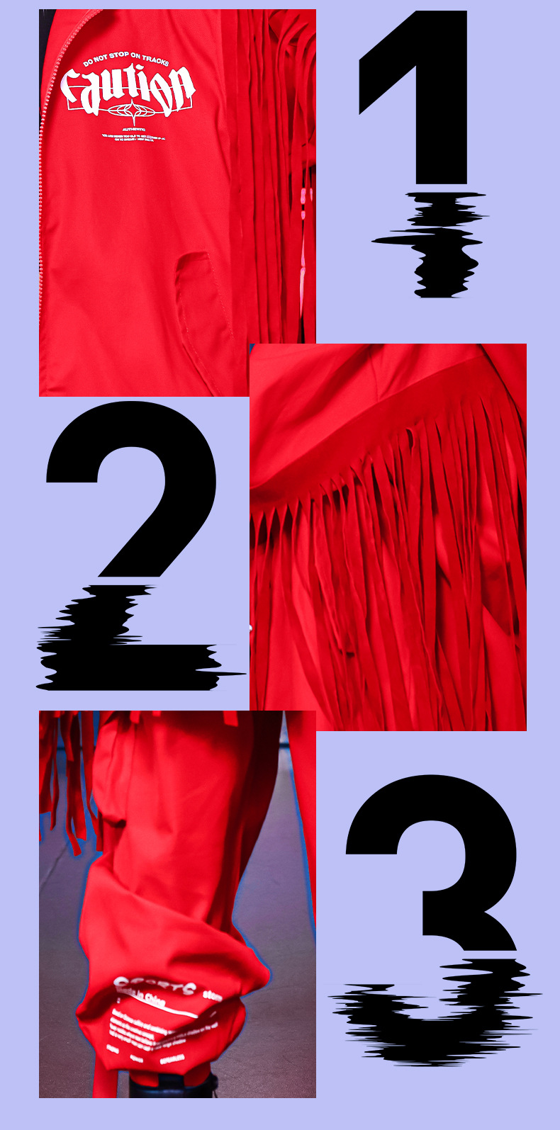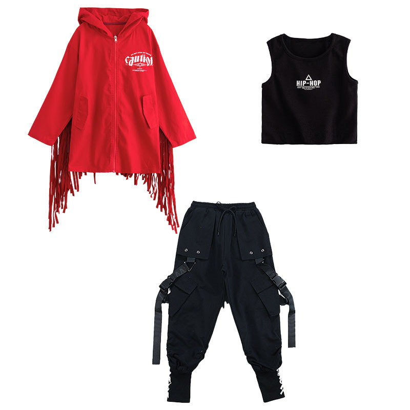 • 582 레드 태슬 후드 윈드 브레이커 + 501 레드 바지 + A513 블랙