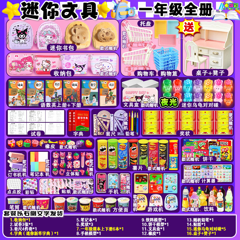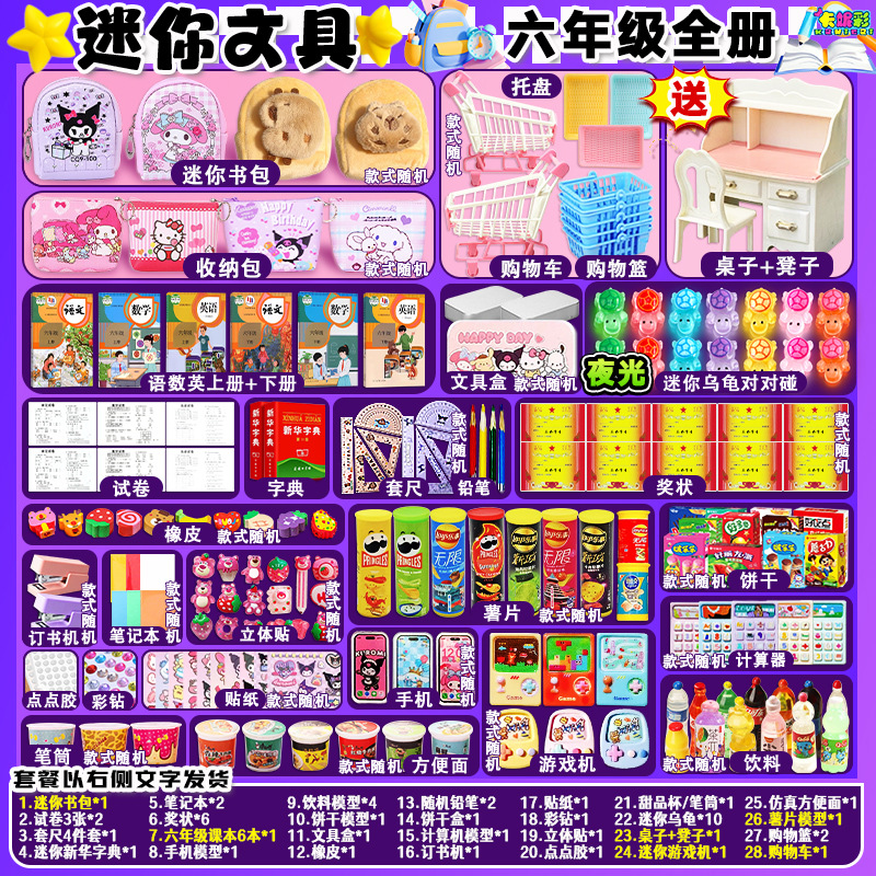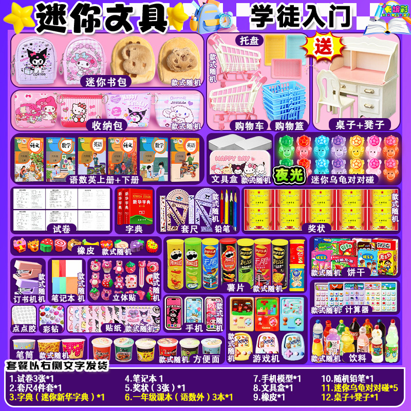 미니 작은 문구 상자 세트 작은 학교 가방 소녀 장난감 시뮬레이션 미니어처 학생 도서 풀 세트 어린이 작은 선물스토어 가기