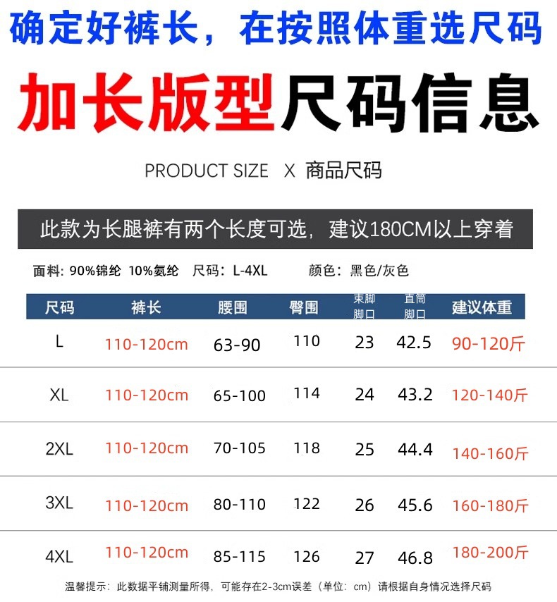 190cm 길이의 바지 남성 키 큰 봄과 가을 스트레이트 얇은 110cm 기모 바지 캐주얼 플로어 바지 120스토어 가기