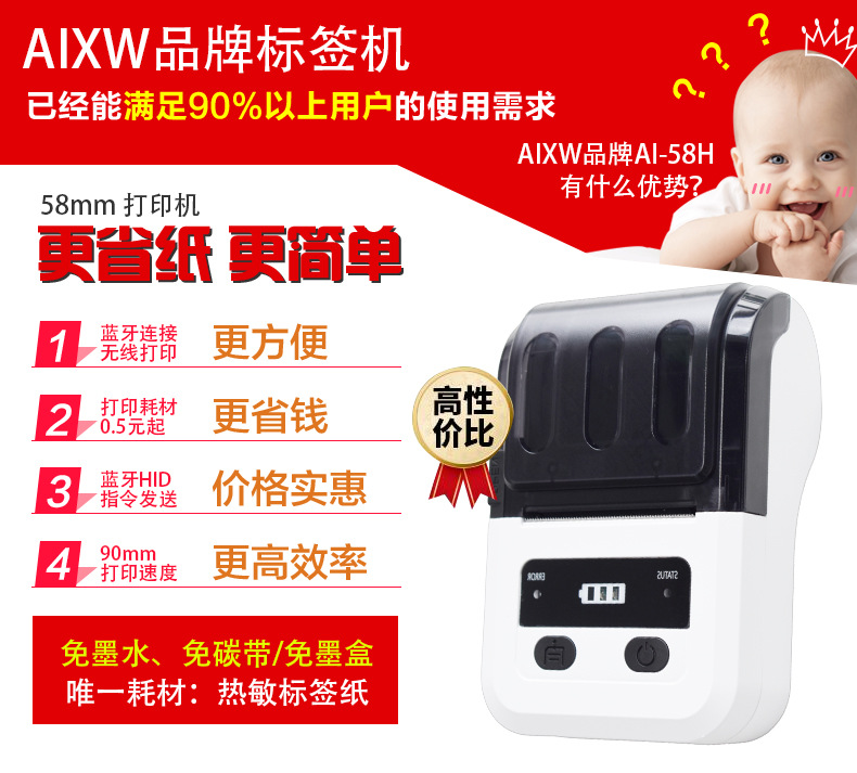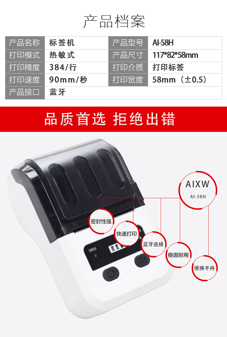 2寸迷你手持蓝牙热敏标签打印机商超货柜价格标签商品介绍标签