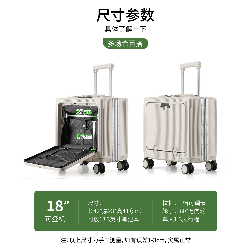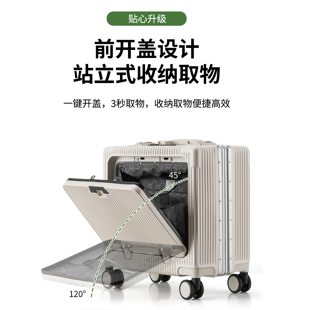 항공기 수평 소형 경량 비 체크 여행 로고 사용자 정의 전면 개방 커버 18 인치 탑승 수하물 상자스토어 가기