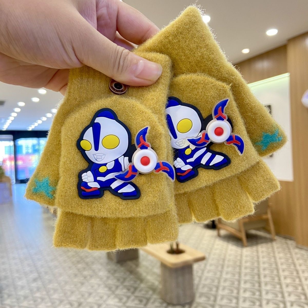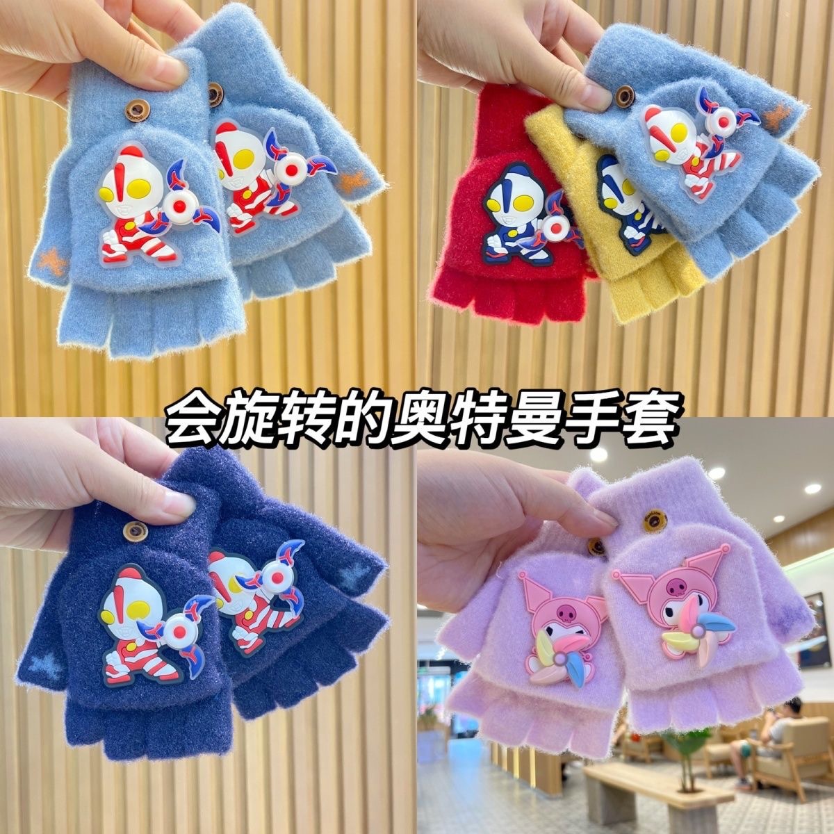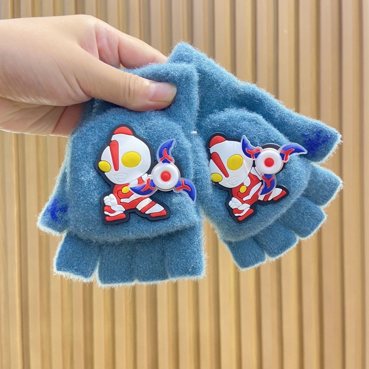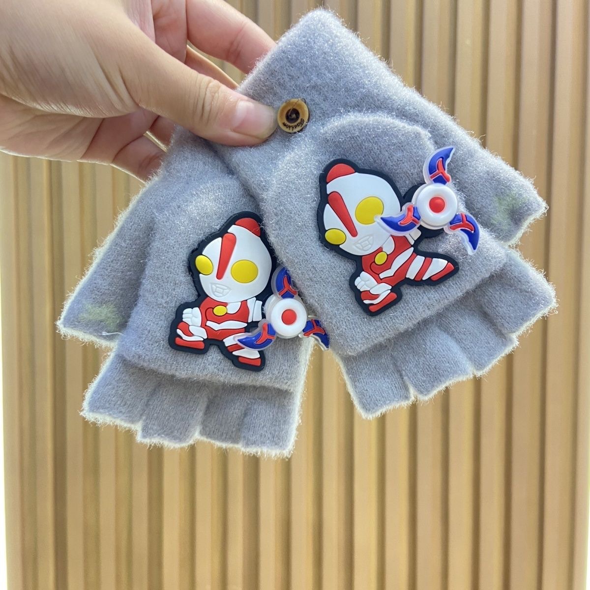 새로운 어린이 회전 울트라 맨 하프 핑거 장갑 울 니트 플립 커버 남자 손가락 누설 쓰기 겨울 두껍게