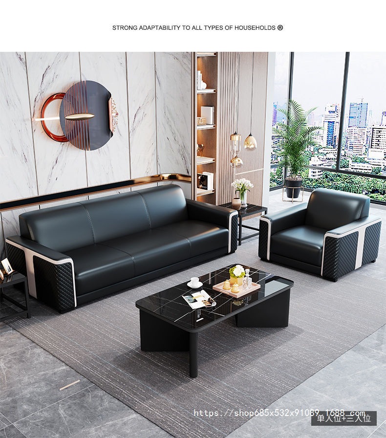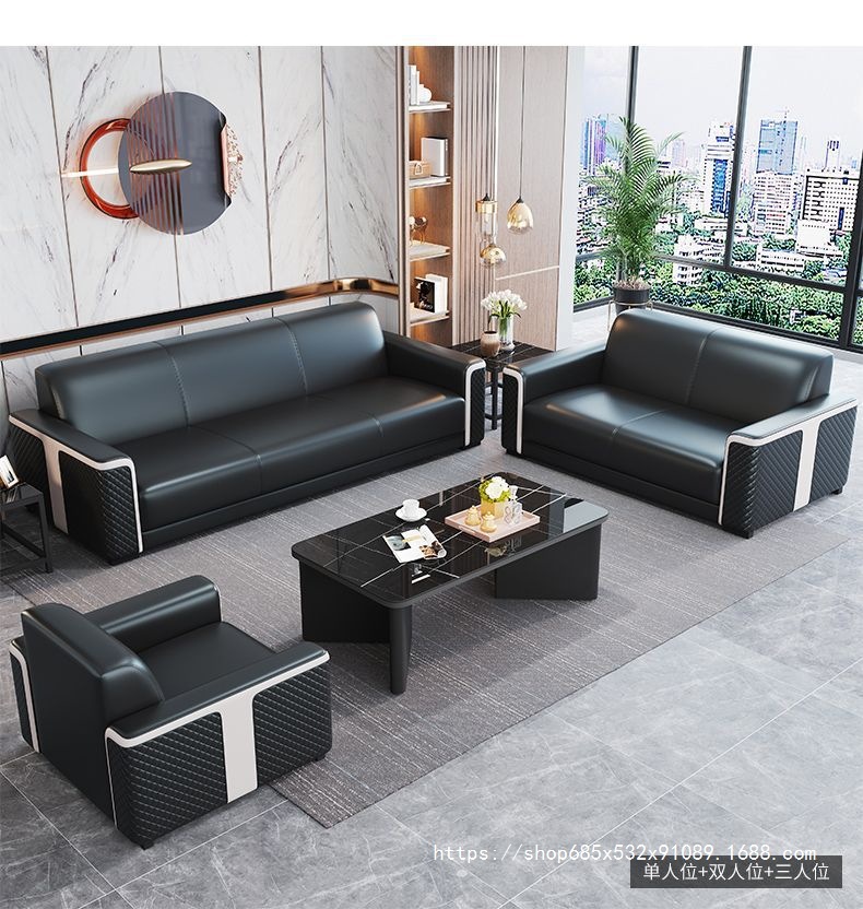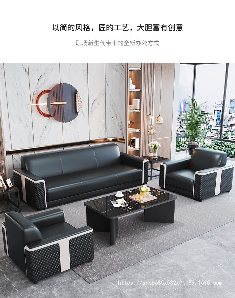 새로운 사무실 소파 사무실 간단한 현대 레저 공간 리셉션 룸 3 인승 소파 커피 테이블 조합 세트스토어 가기