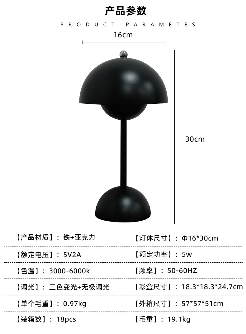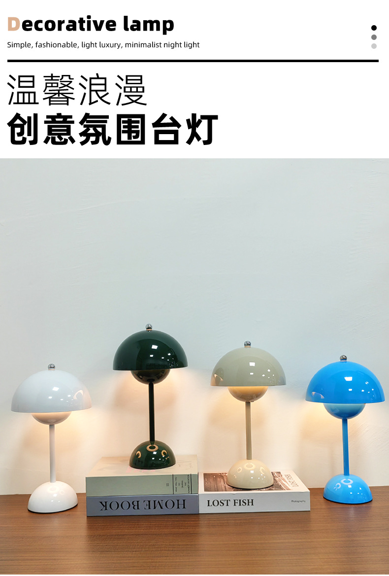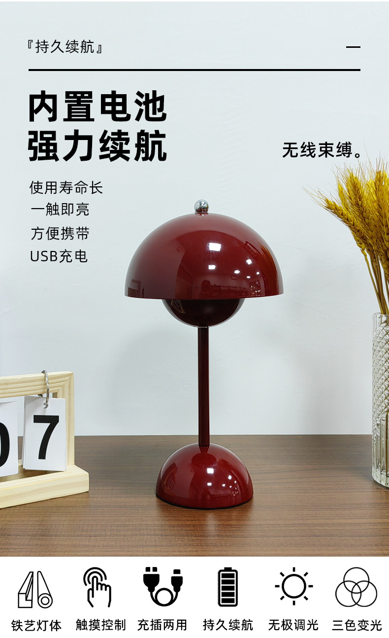 덴마크 새싹 램프 북유럽 간단한 디자이너 버섯 램프 충전식 웨딩 룸 장식 침실 침대 옆 분위기 램프