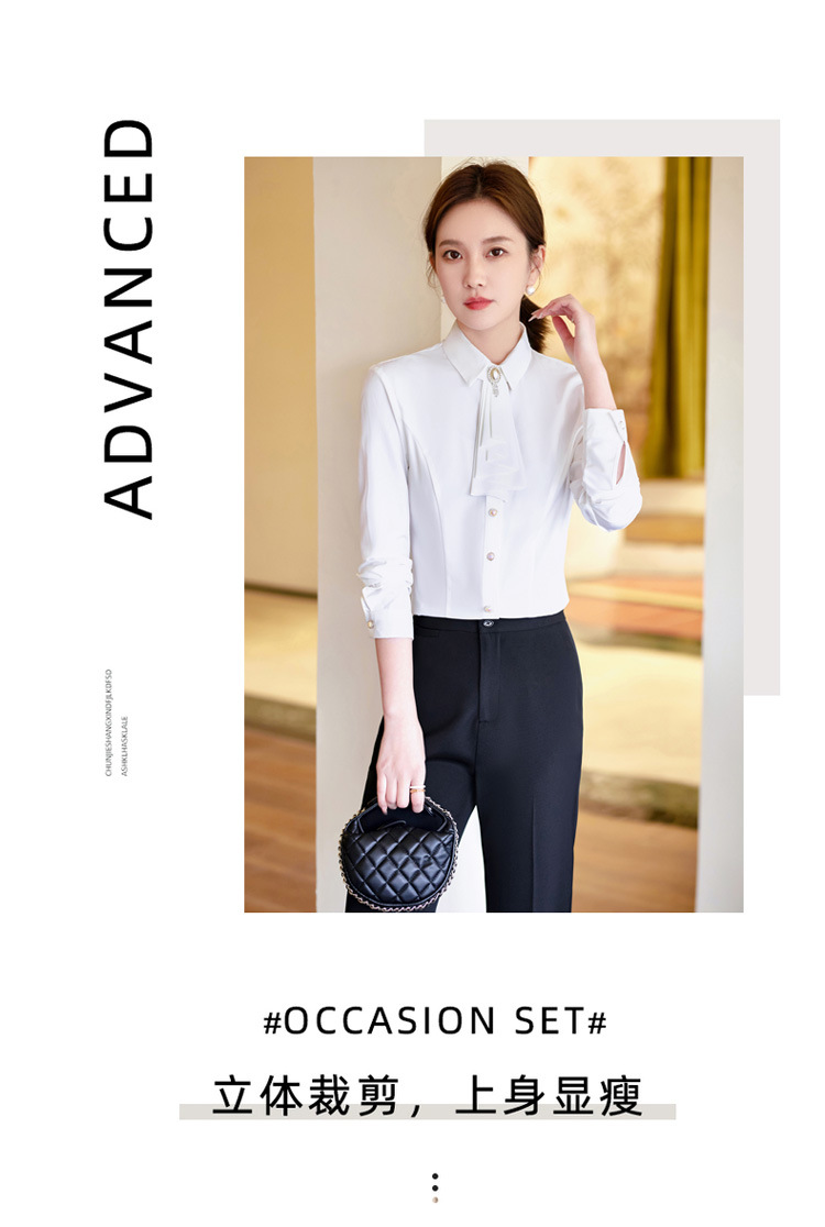 화이트 셔츠 여성 패션 웨스턴 스타일 2024 가을 새로운 긴 소매베이스 셔츠 여성 호텔 리셉션 작업 옷
