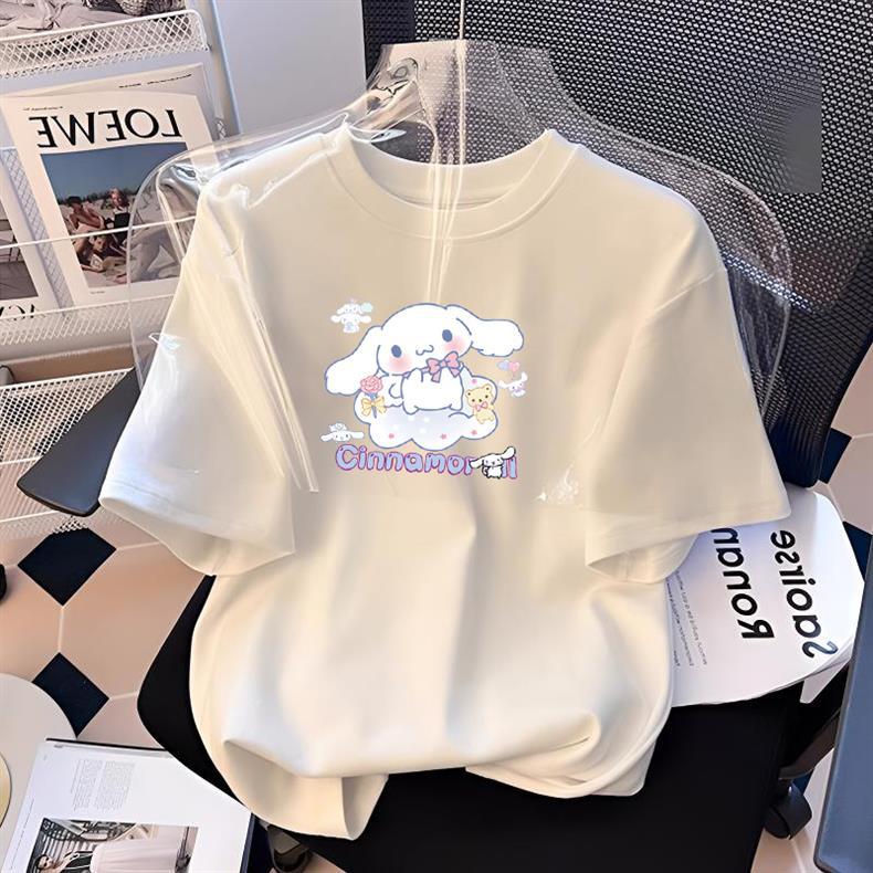 남성과 여성의 화이트 코튼 반팔 티셔츠 여름 느슨한 서양식 만화 반소매 탑스토어 가기