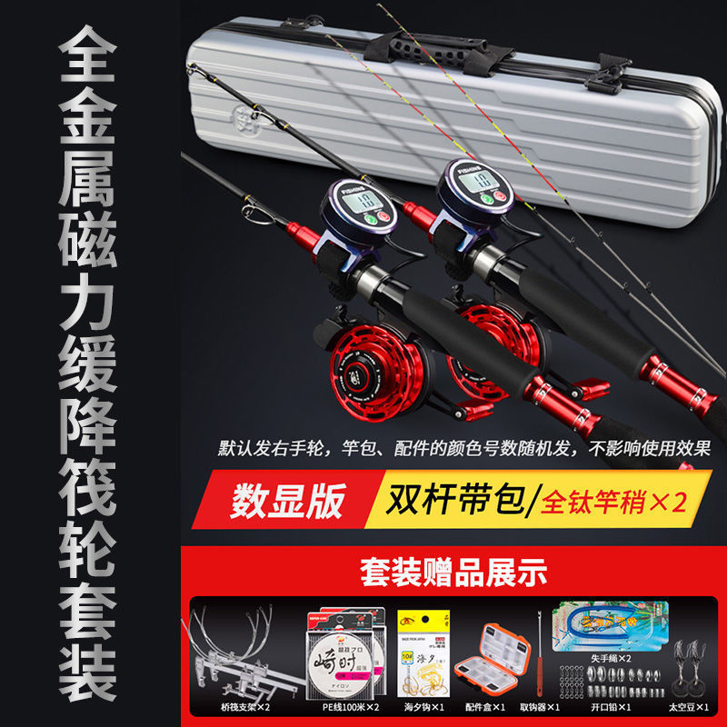 • 더블 폴 풀 티타늄 + 디지털 디스플레이 목 낚시 릴 [로드 백 포함]