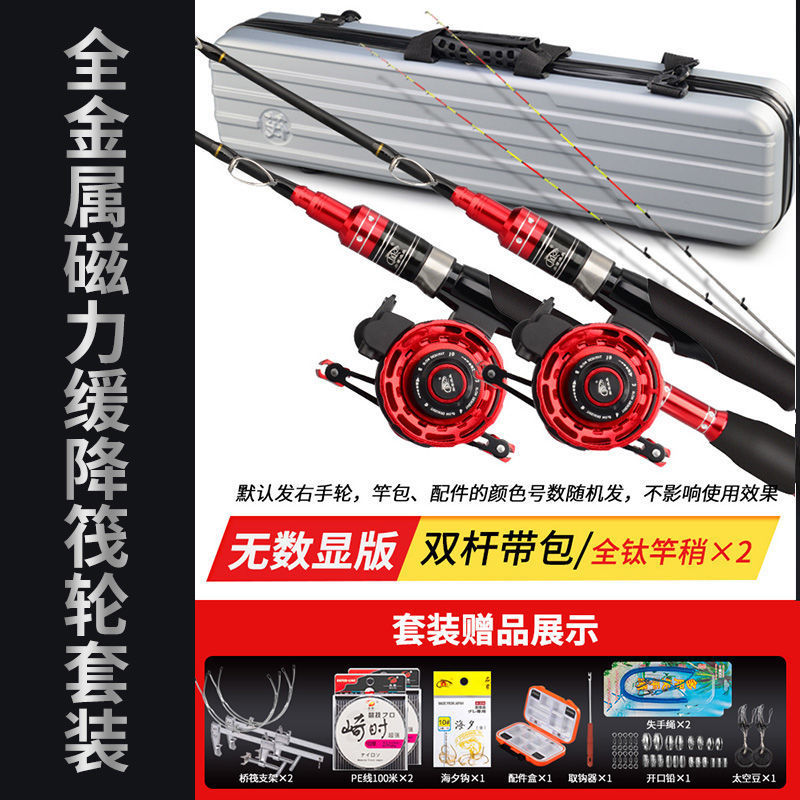 • 더블 폴 풀 티타늄 폴 + 수많은 디스플레이 목 낚시 릴 [로드 백 포함]