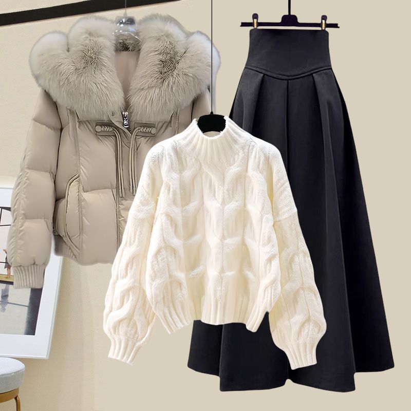 겨울 세트 여성의 새로운 한국 스타일 부드러운 스타일 중국 단추 면화 재킷 코트 스웨터 스커트 3 피스 세트스토어 가기