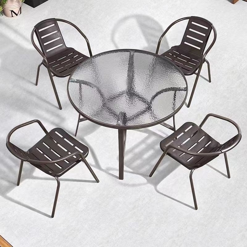 야외 테이블과 의자 발코니 야외 간단한 거실 현대 우유 차 가게 철 야외 안뜰 조합 가정 레저