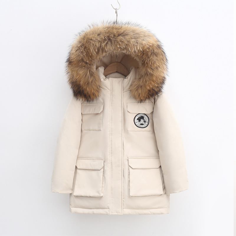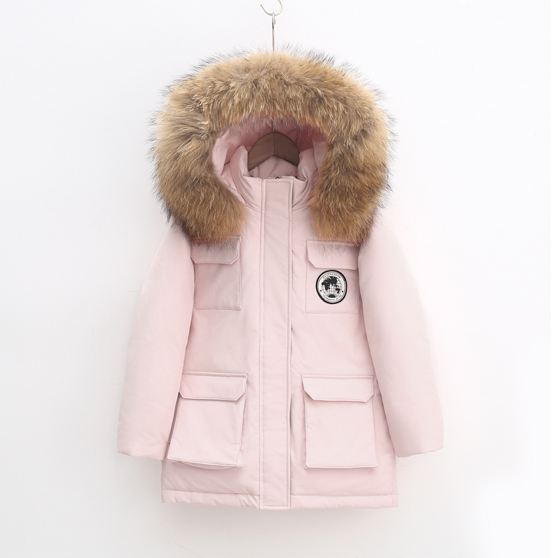 2024 새로운 어린이 다운 재킷 소년 및 소녀 중 및 긴 겨울 두꺼운 충전 재킷 서양 스타일