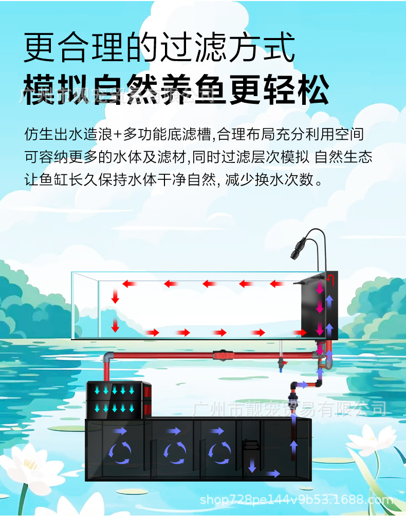 스트림 탱크 슈퍼 화이트 토종 야생 창조적 인 조경 하단 필터 거실 산업 바람 푸른 길류오 물고기 탱크 물 잔디 탱크 대형스토어 가기