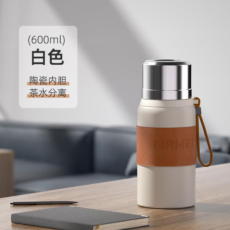• [업그레이드된 세라믹 라이너] 화이트 600ml (차와 물 분리 + 가죽 케이스)