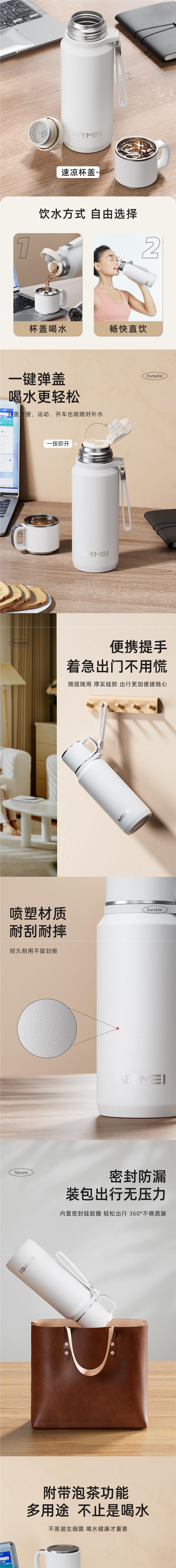 • [업그레이드된 세라믹 라이너] 화이트 1000ml (차와 물 분리 + 가죽 케이스)