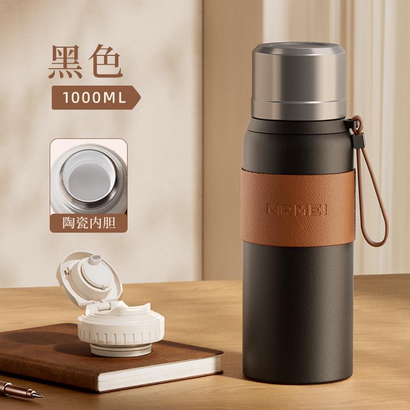 • [업그레이드된 세라믹 라이너] 블랙 1000ml (차와 물 분리 + 가죽 케이스)
