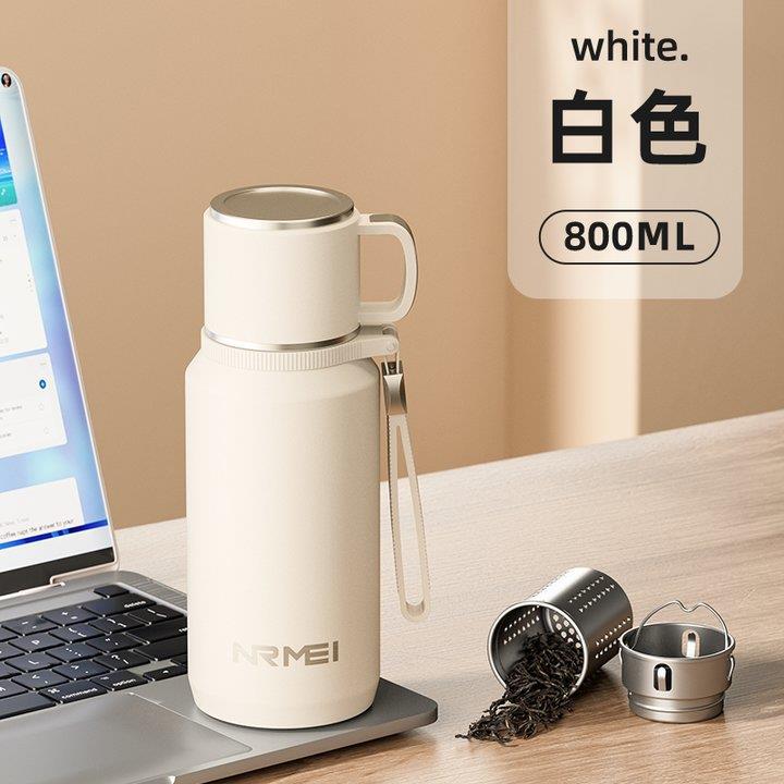 • [업그레이드된 세라믹 라이너] 화이트 800ml (차와 물 분리 + 가죽 케이스)