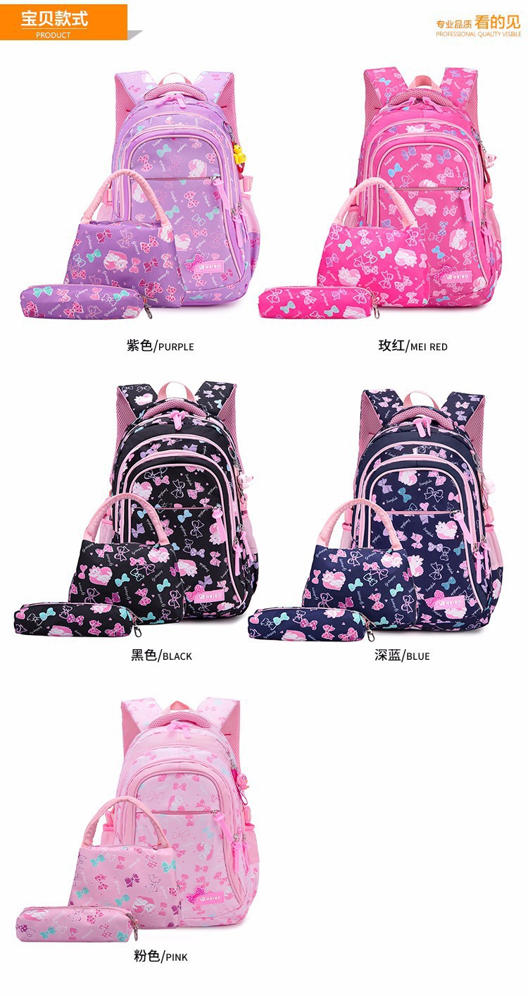 초등 및 중등 학교 학생을위한 한국어 버전의 학교 가방 소녀 어린이 초경량 방수 배낭 3 피스 국경 머리 세대