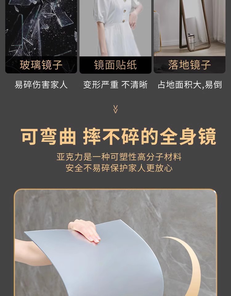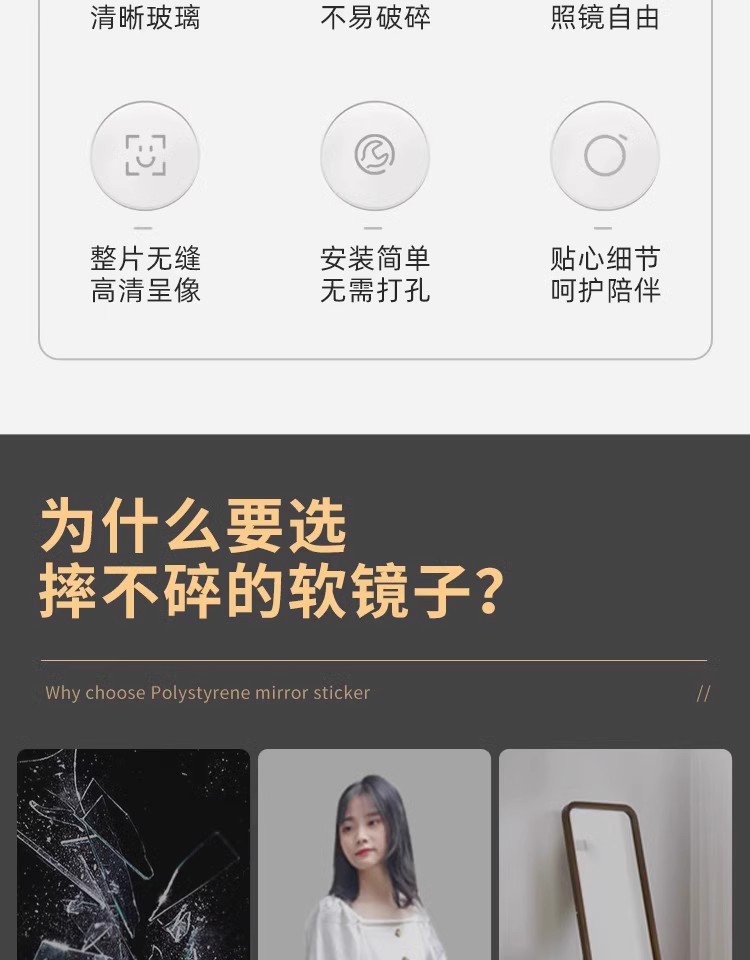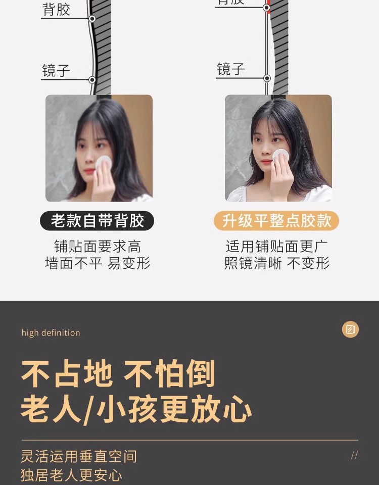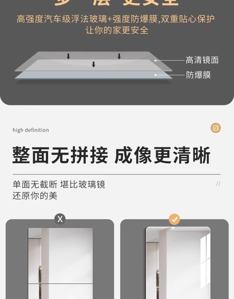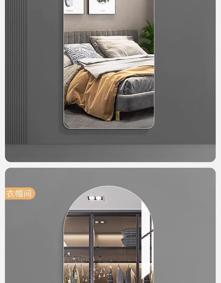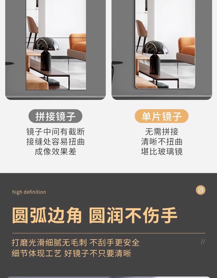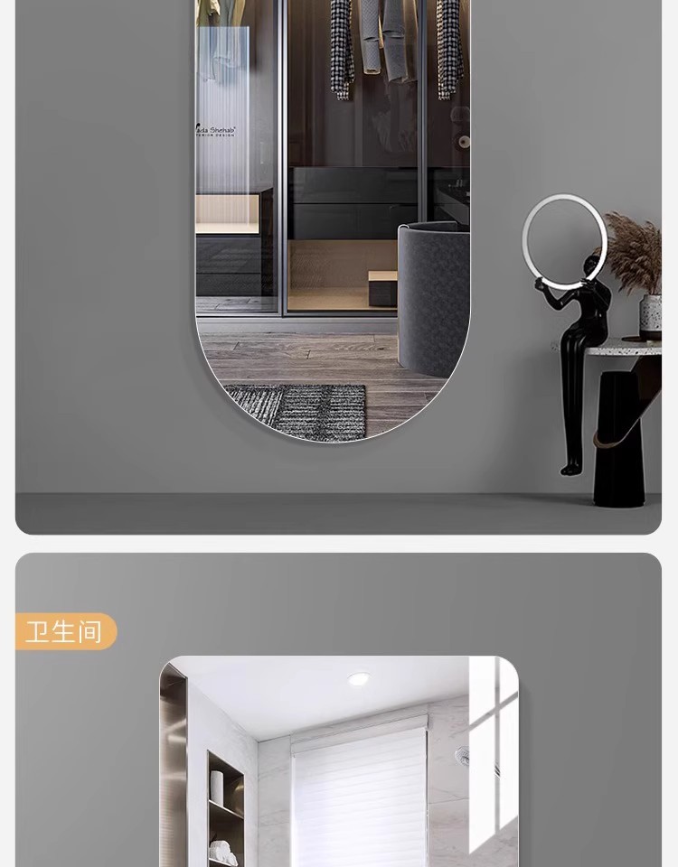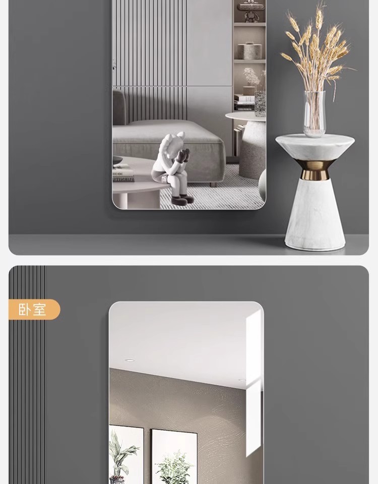 거울 벽에 장착 된 자체 접착 형 전체 길이 거울 가정용 벽 장착 페이스트 기숙사 벽 장착 피팅 벽 고화질 유리 드레싱 거울스토어 가기