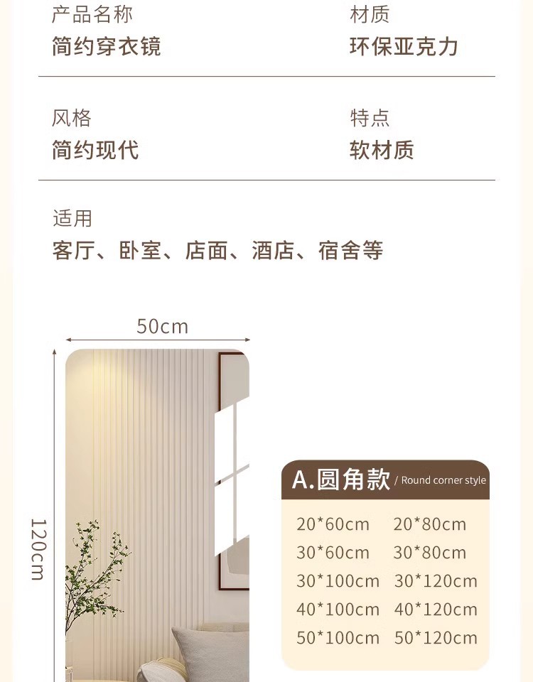 • 둥근 모서리 모델 50*120cm [두꺼운 렌즈, 고화질 및 변형 없음]