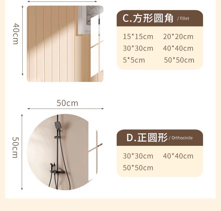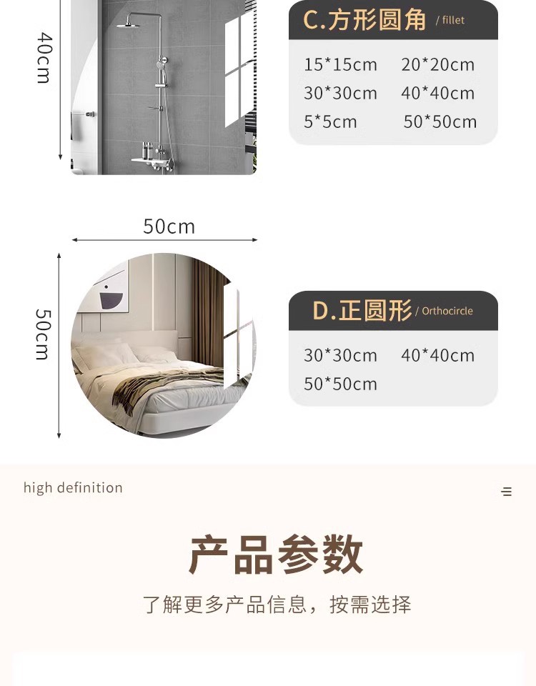 • 둥근 모서리 모델 50*50cm [두꺼운 렌즈, 고화질 및 변형 없음]
