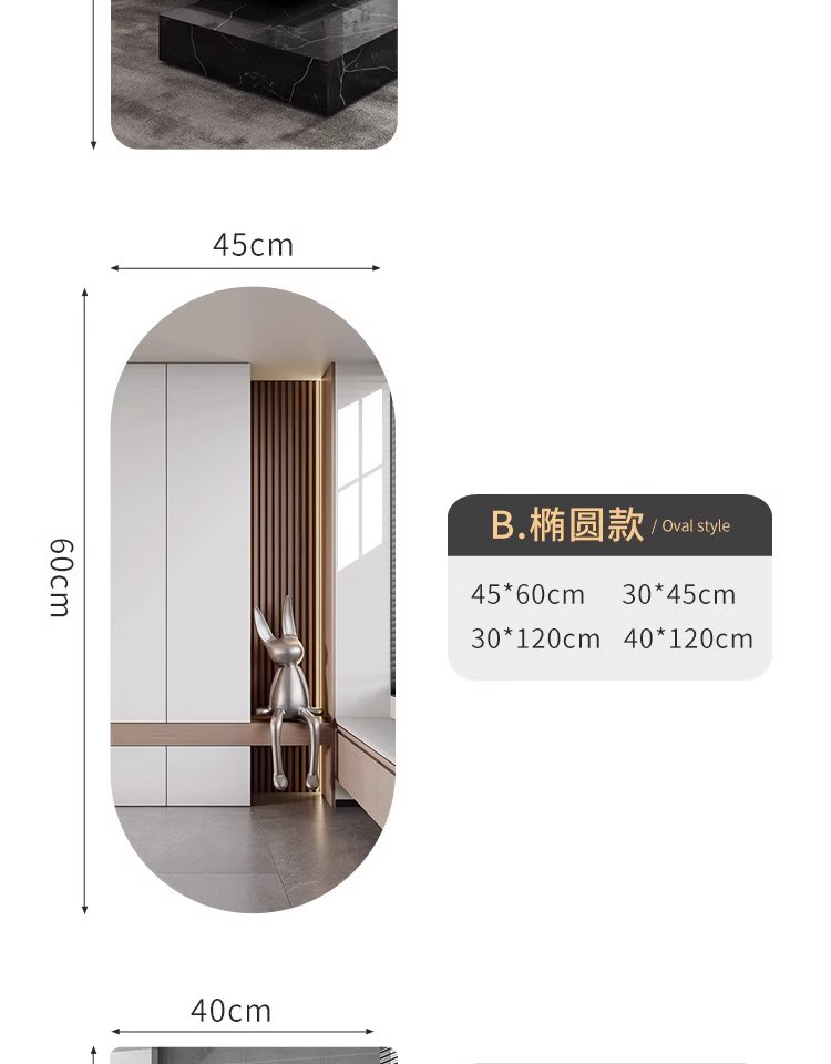 • 타원형 모델 40*120cm [두꺼운 렌즈, 고화질, 변형 없음]