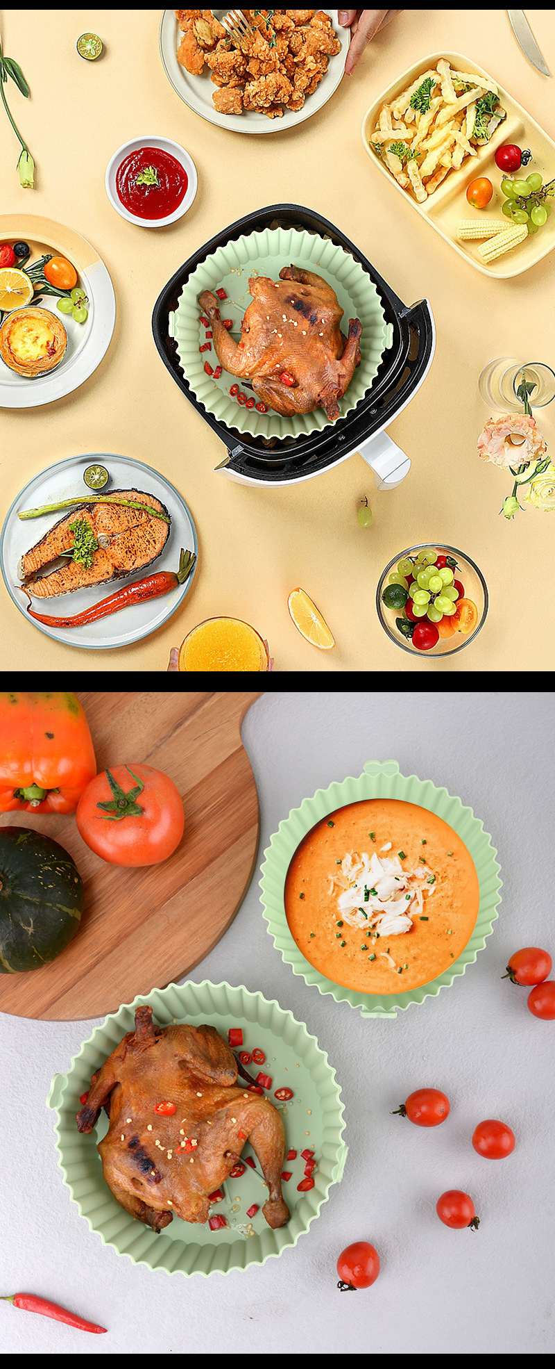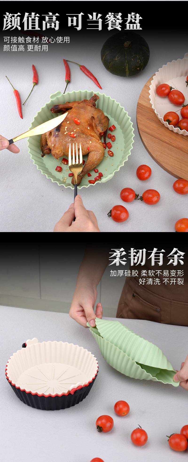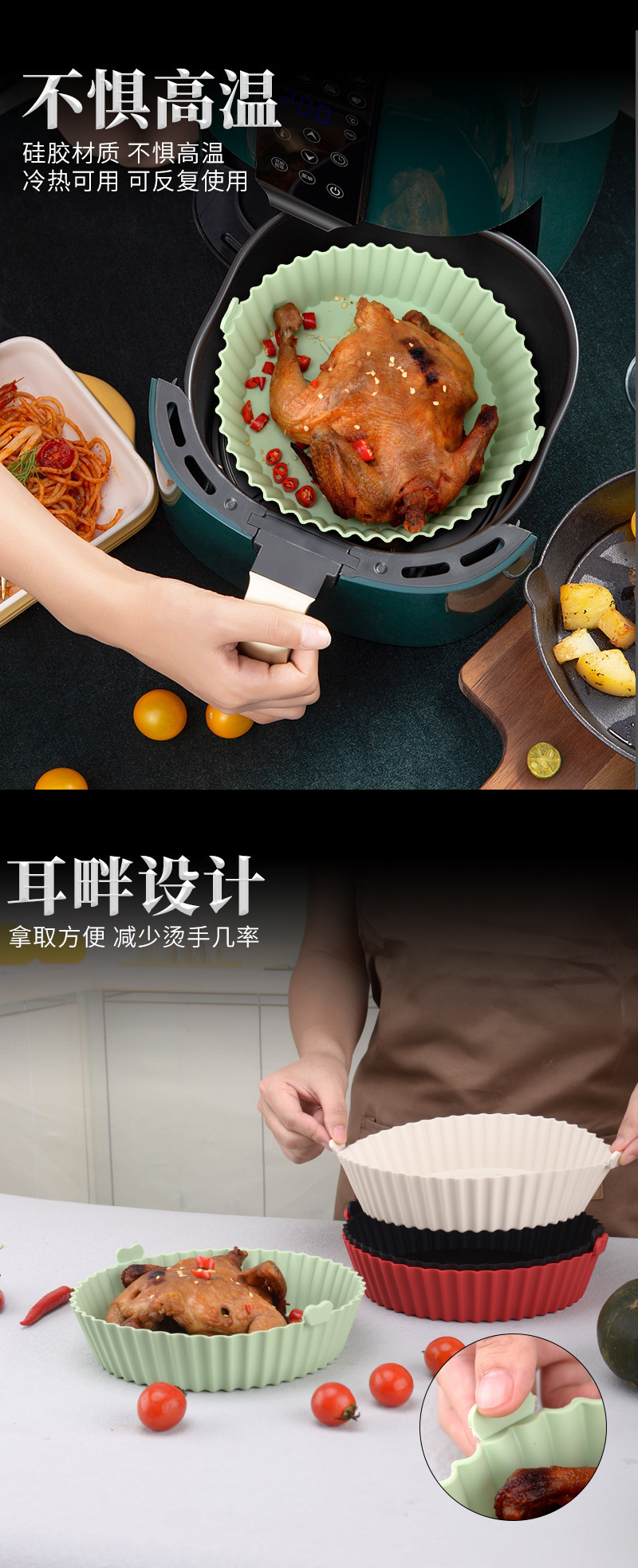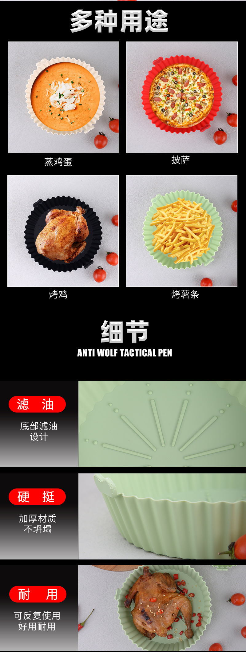 실리콘 베이킹 트레이 고온 저항 라운드 베이킹 트레이 대형 패딩 패드 청소하기 쉬운 공기 프라이어 종이 패드 특수