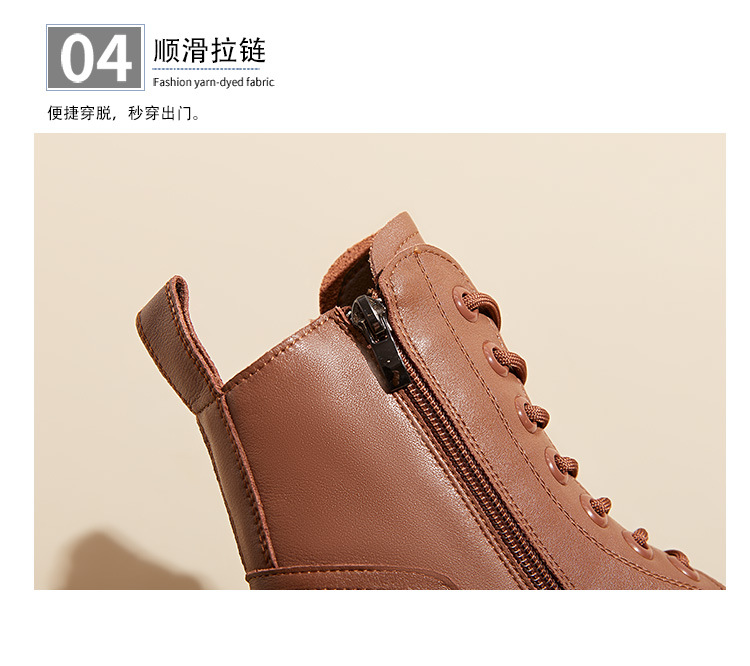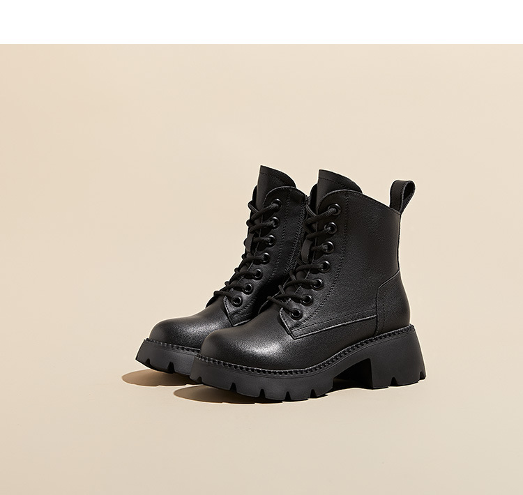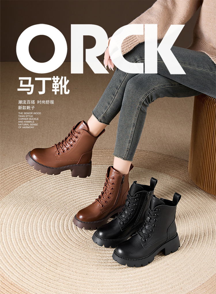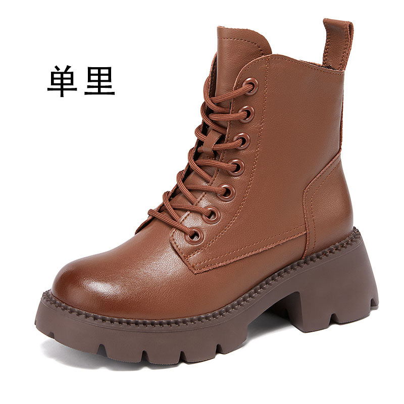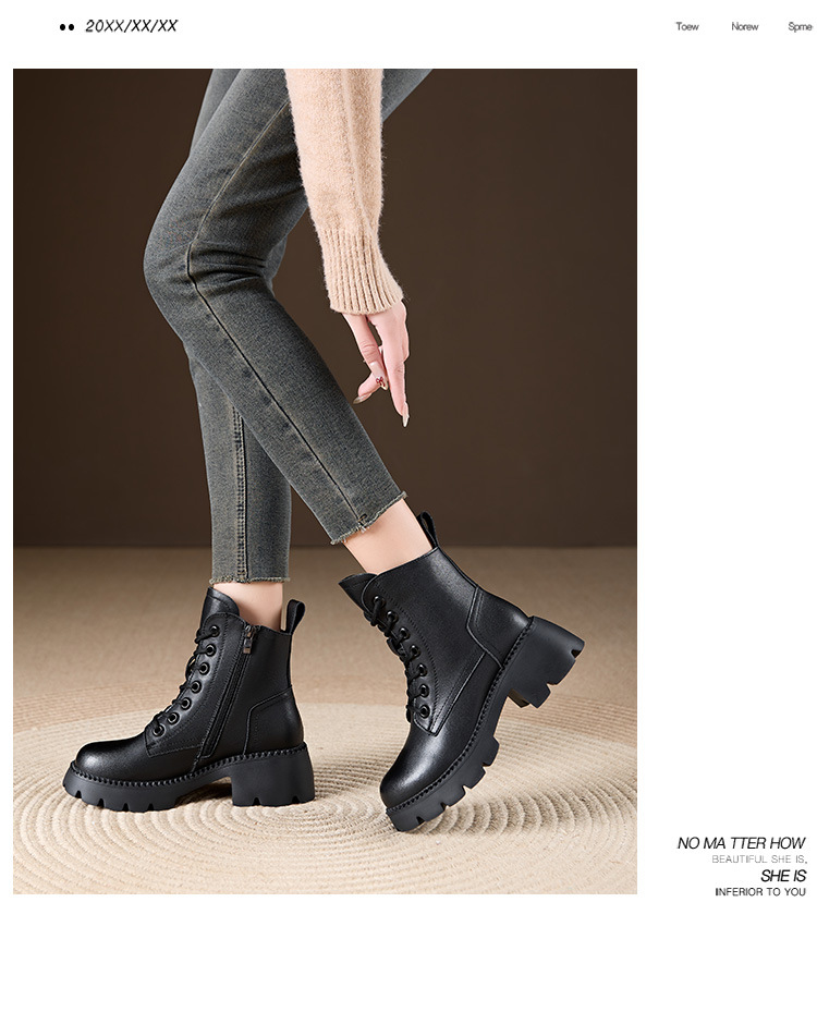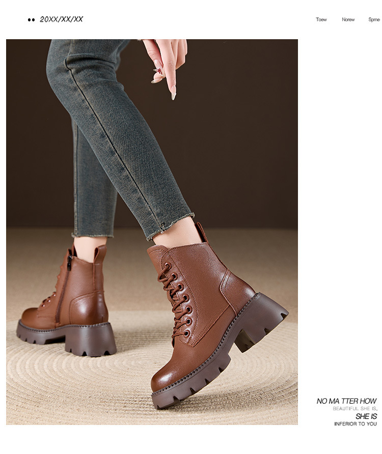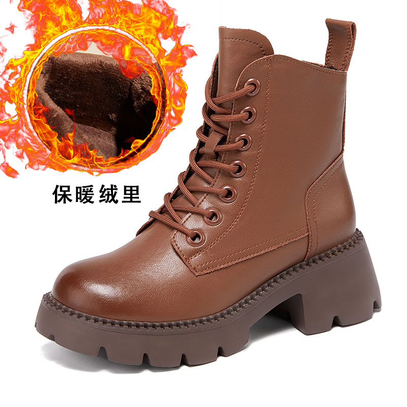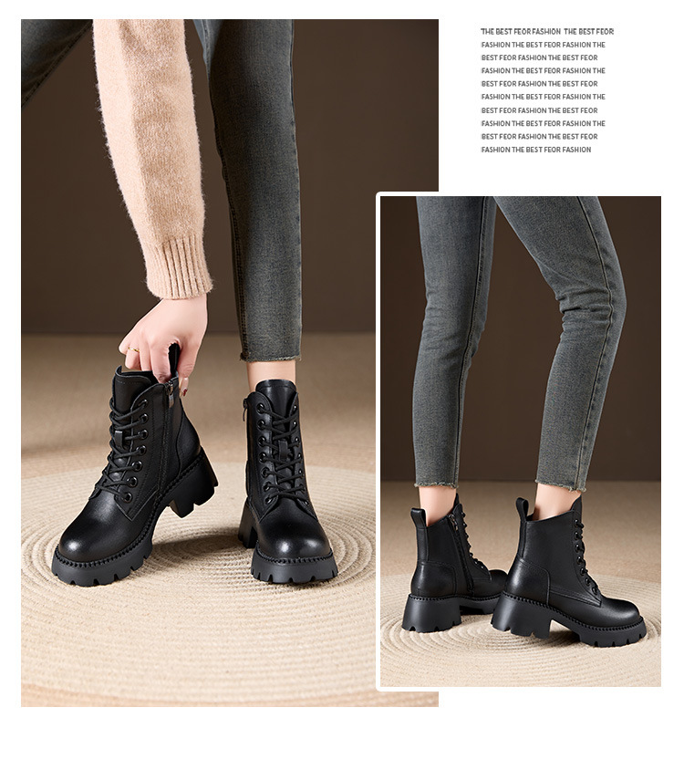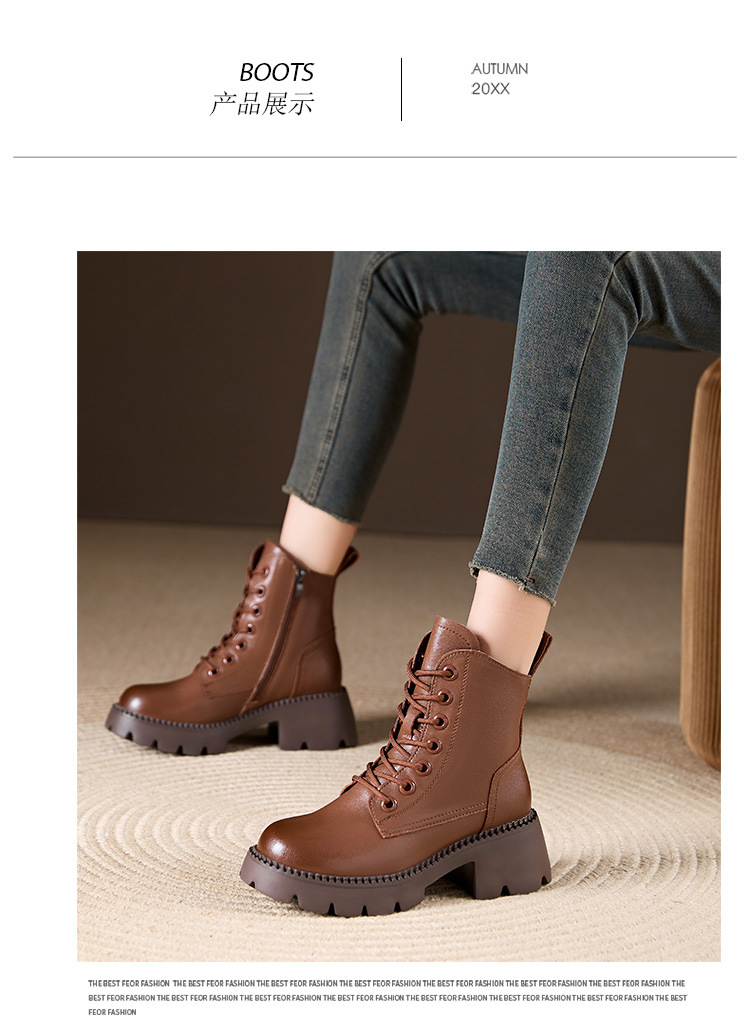 여성용 두꺼운 밑창 마틴 부츠 2024 새로운 가을 겨울 부츠 영국식 정품 가죽 하이힐 플러스 벨벳 짧은 부츠스토어 가기