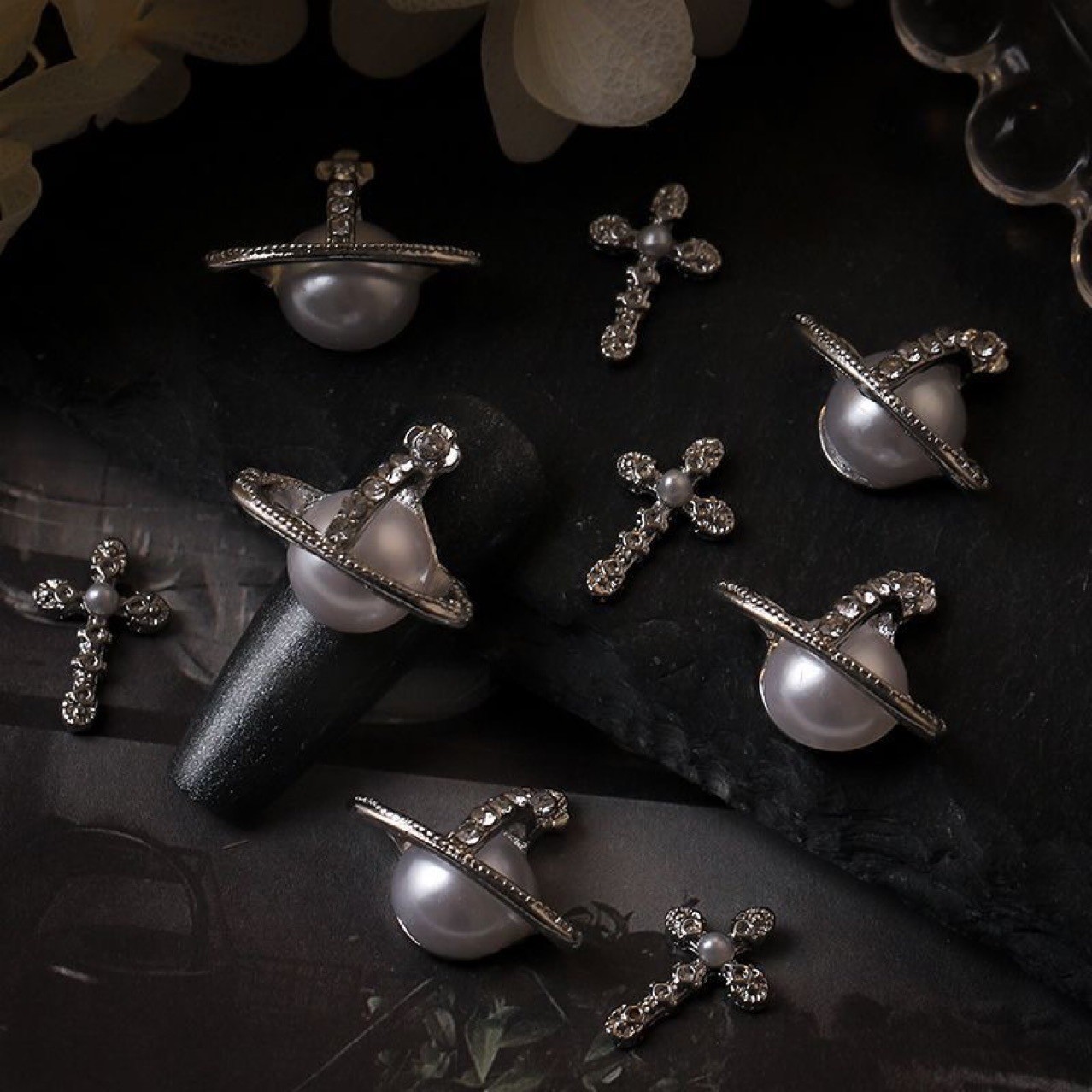 매니큐어 쥬얼리 황후 Dowager LZ 같은 스타일 토성 진주 크로스 네일 도금 진주 드릴 매니큐어 보석 폭발스토어 가기
