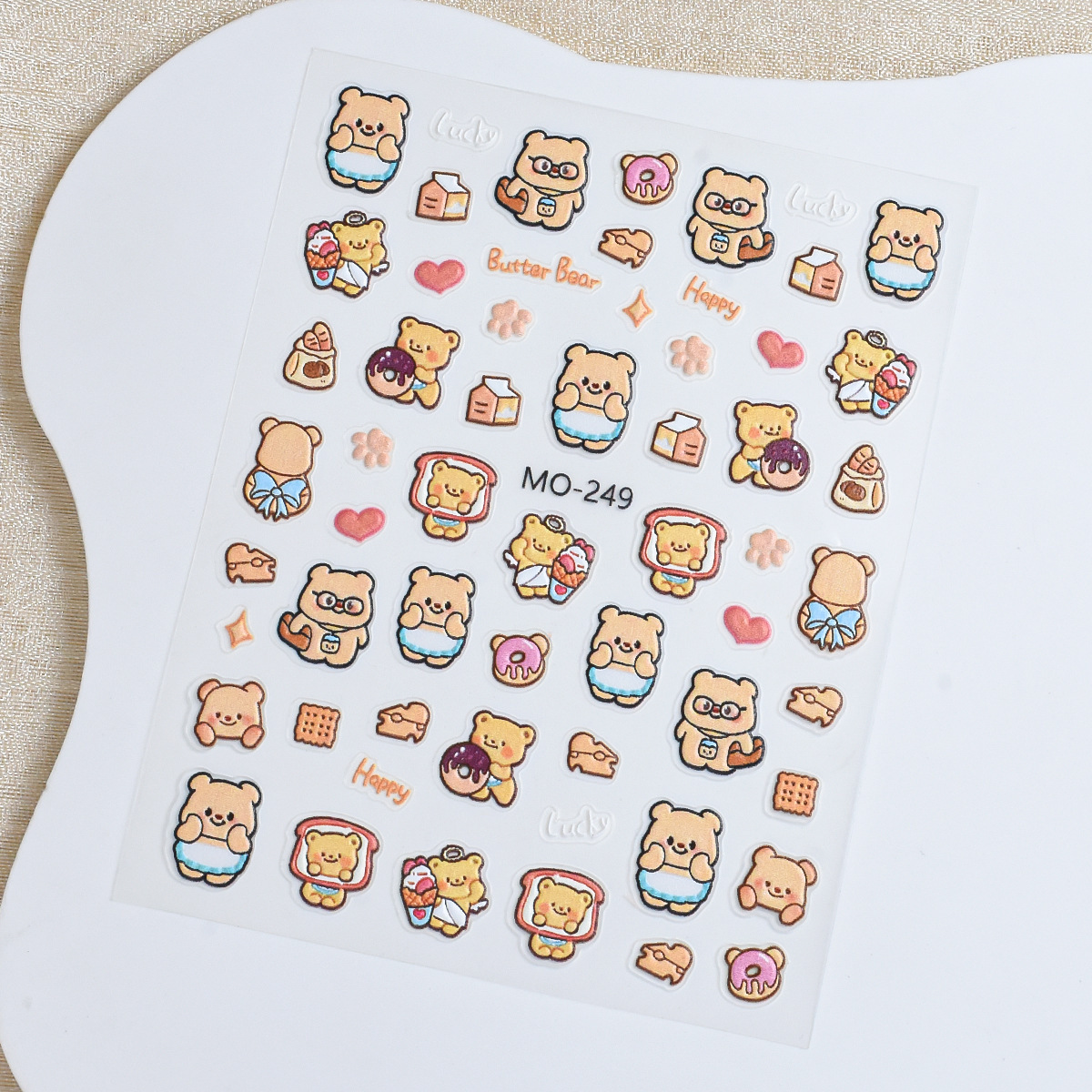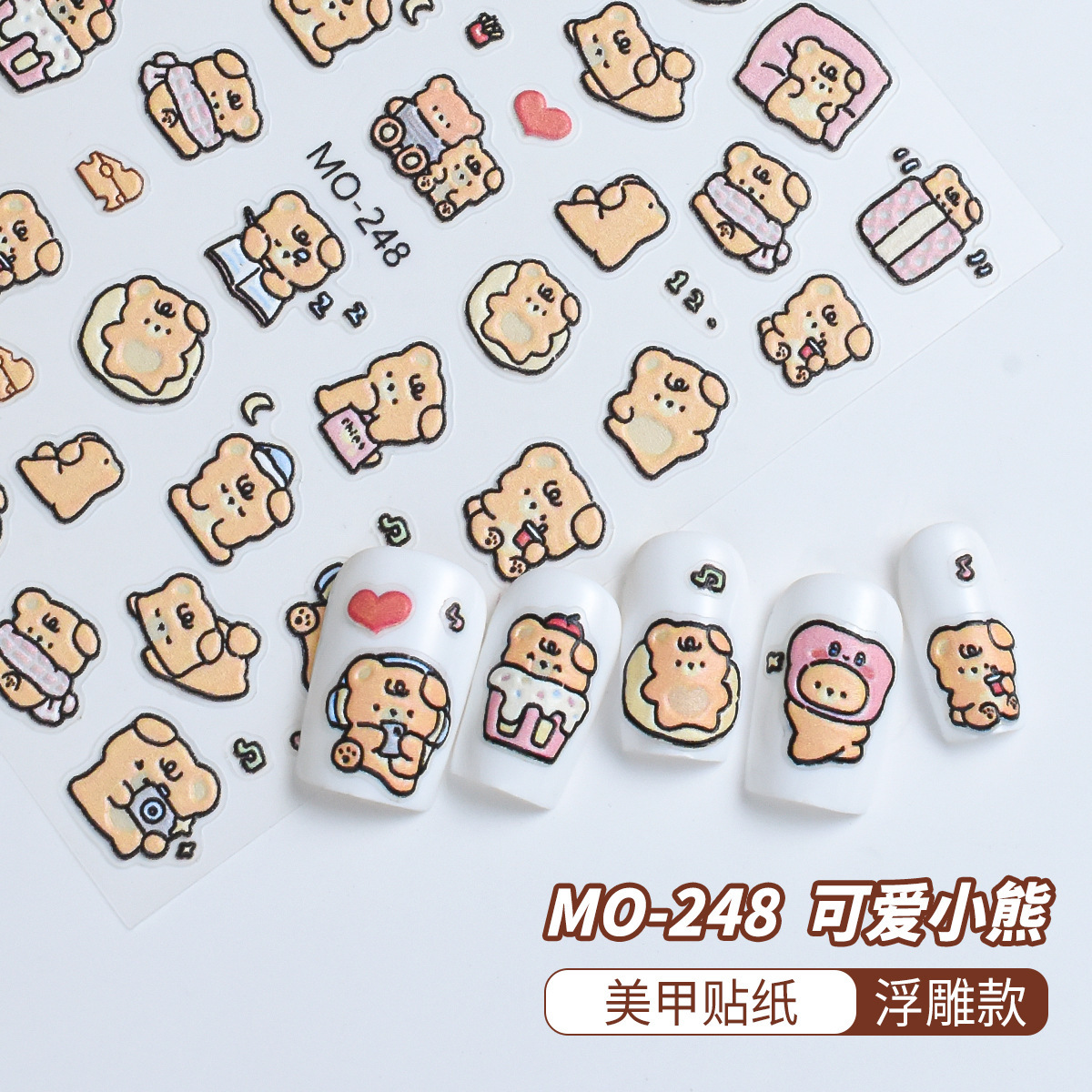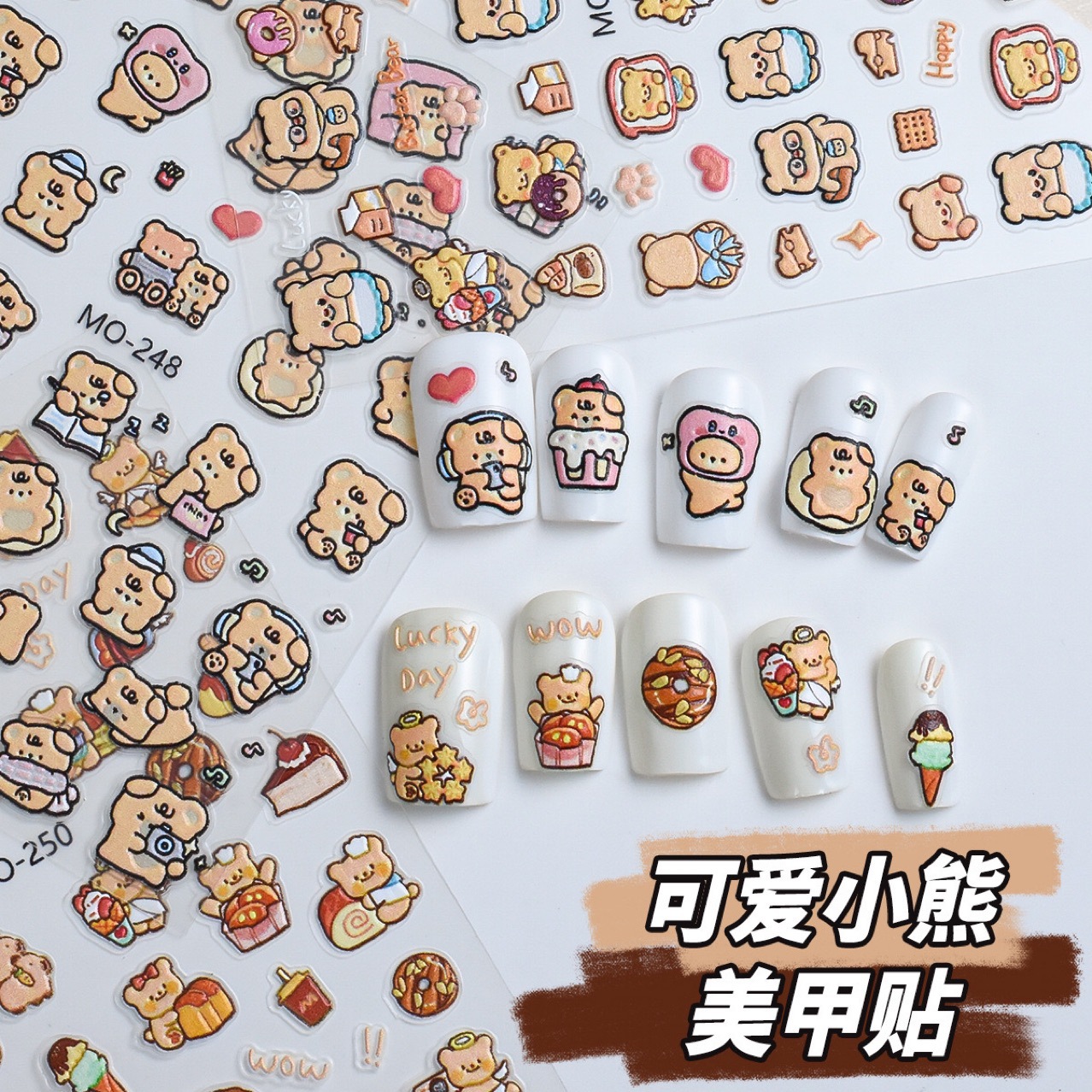 네일 아트 스티커 귀여운 곰 아이스크림 구호 3 차원 만화 곰 동물 낭만적 인 사랑 네일 데칼스토어 가기