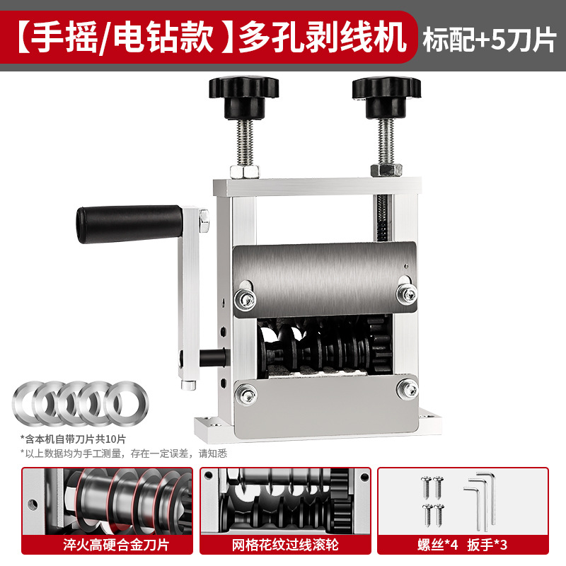 • [핸드 크랭크/전기 드릴 모델] 수동 와이어 스트리핑 기계 + 블레이드 5개(핸드 드릴에 연결 가능)