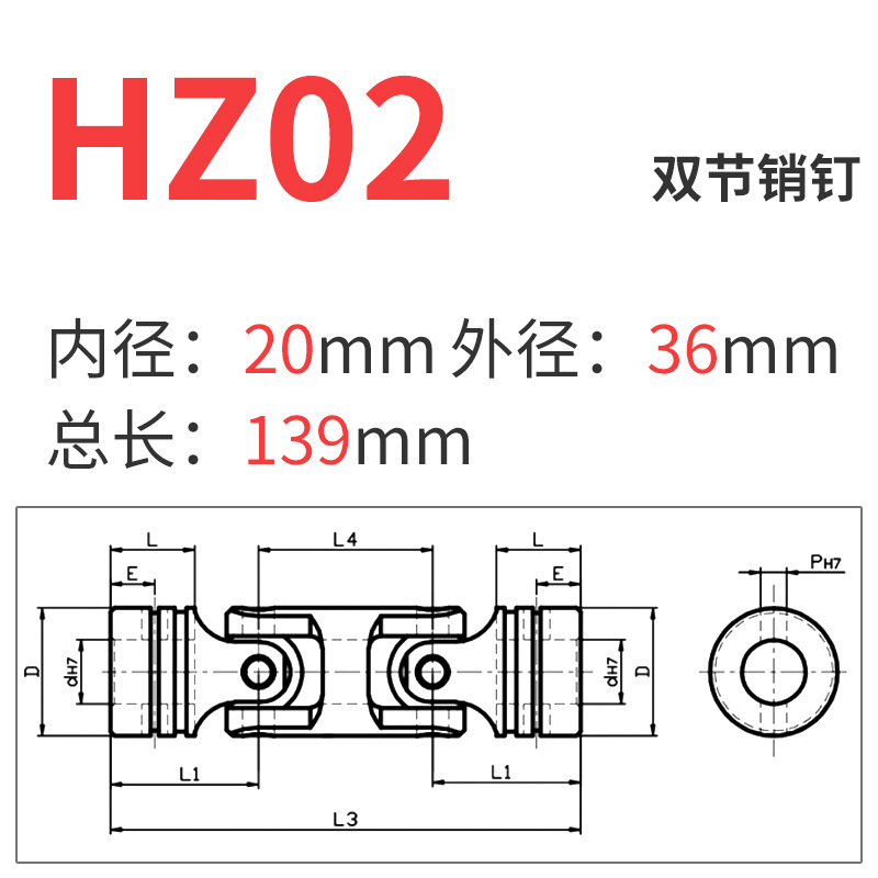 • HZ02-d20/외경 36 내부 구멍 20 길이 139
