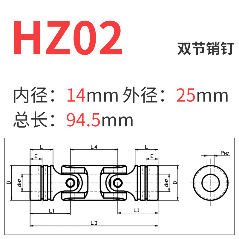 • HZ02-d14/외경 25 내부 구멍 14 길이 94.5