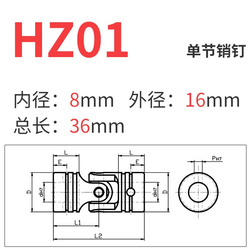 • HZ01-d8/외경 16 내부 구멍 8 길이 36