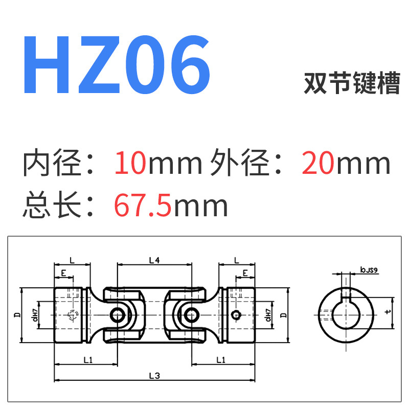 • HZ06-d10/외경 20, 내부 구멍 10, 길이 67.5