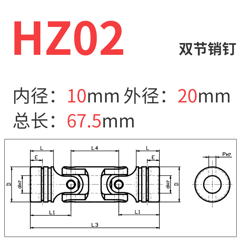 • HZ02-d10/외경 20, 내부 구멍 10, 길이 67.5