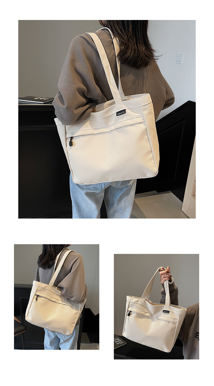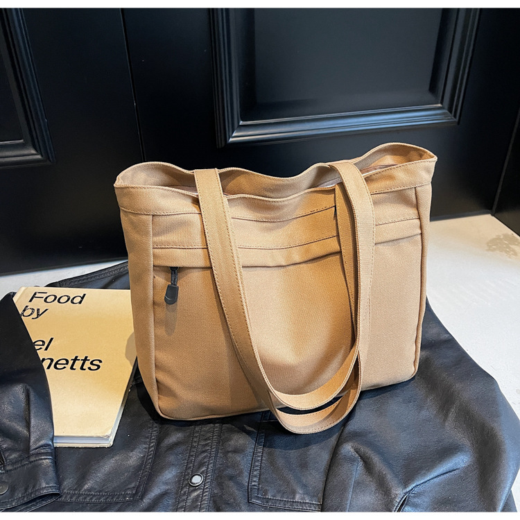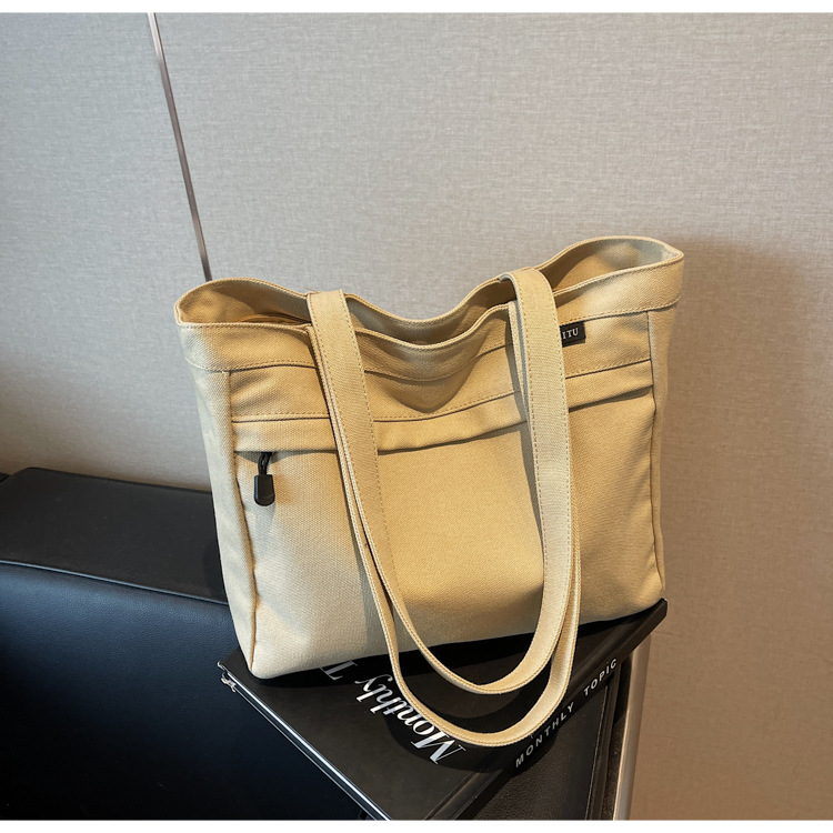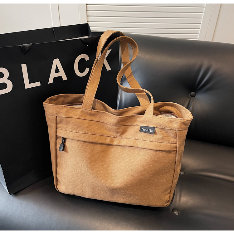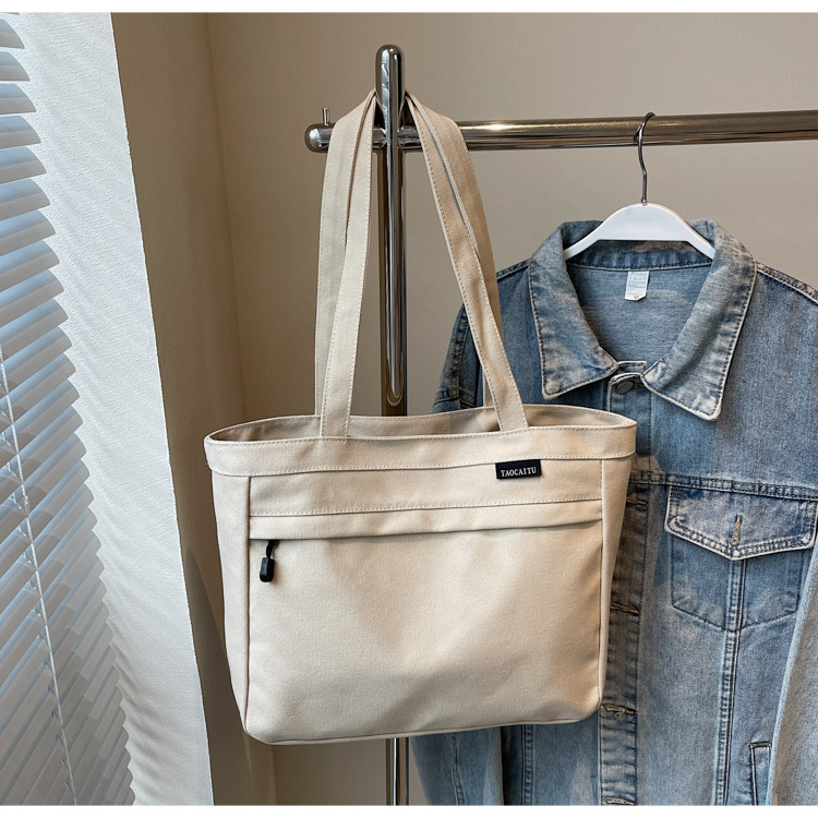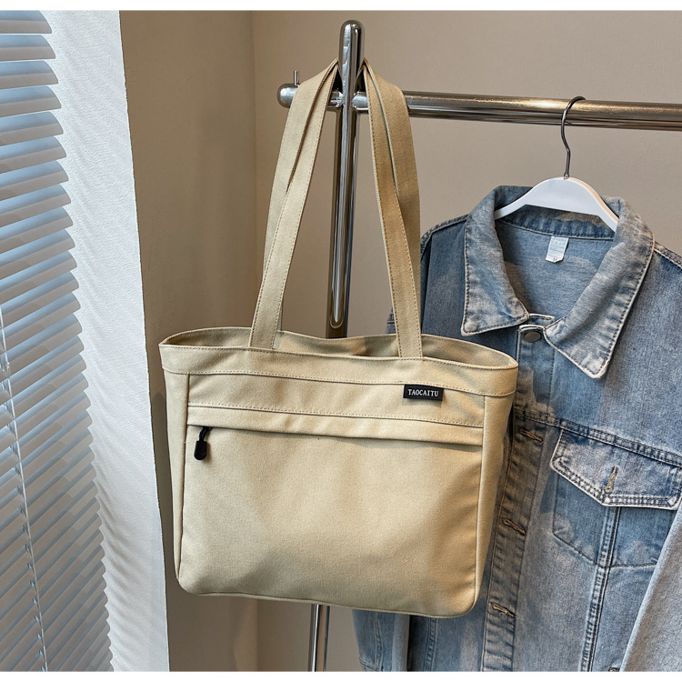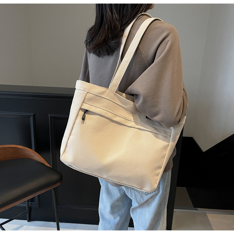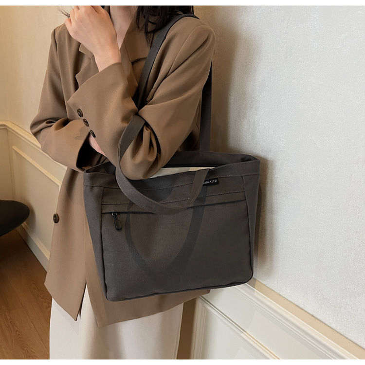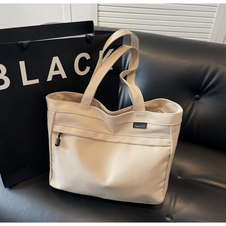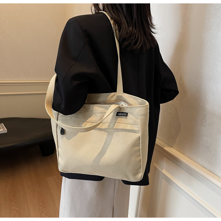 대용량 캐주얼 캔버스 가방 2024 새로운 유행 INS 클래스 가방 토트 백 큰 가방 숄더 백 솔리드 컬러스토어 가기