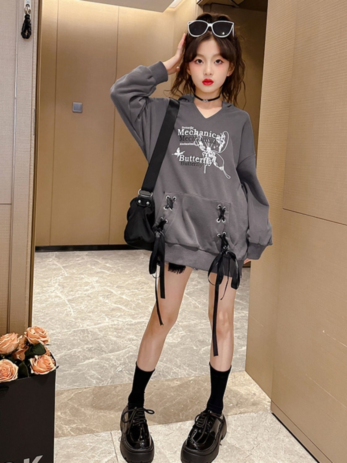 여아 캐주얼 스웨트셔츠 2025 봄 가을 신상 한국 스타일 후드티 중대형 아동용 루즈핏 티셔츠 패셔너블 상의