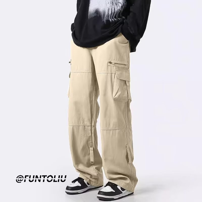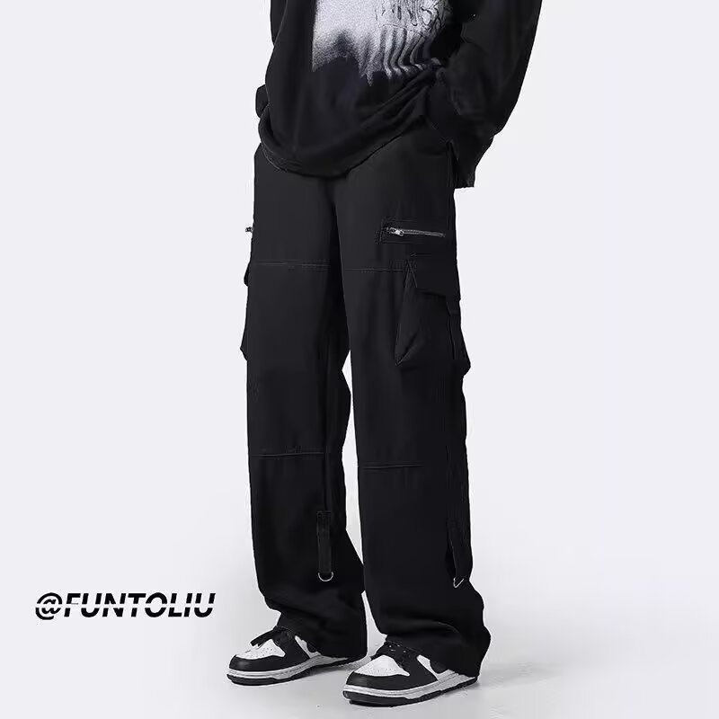 멀티 포켓 오버올 남성 가을 신상 팬츠 트렌디 스트레이트 루즈 캐주얼 팬츠 니치 지퍼 바닥 팬츠 트렌디스토어 가기
