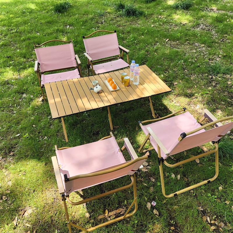 야외 탄소 강철 계란 롤 테이블 알루미늄 합금 커밋 의자 피크닉 테이블 캠핑 의자 마당 접이식 테이블 세트