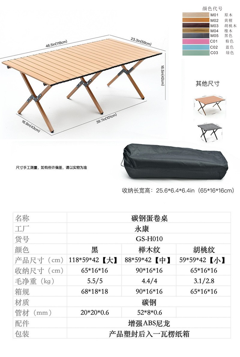 야외 탄소 강철 계란 롤 테이블 알루미늄 합금 커밋 의자 피크닉 테이블 캠핑 의자 마당 접이식 테이블 세트스토어 가기