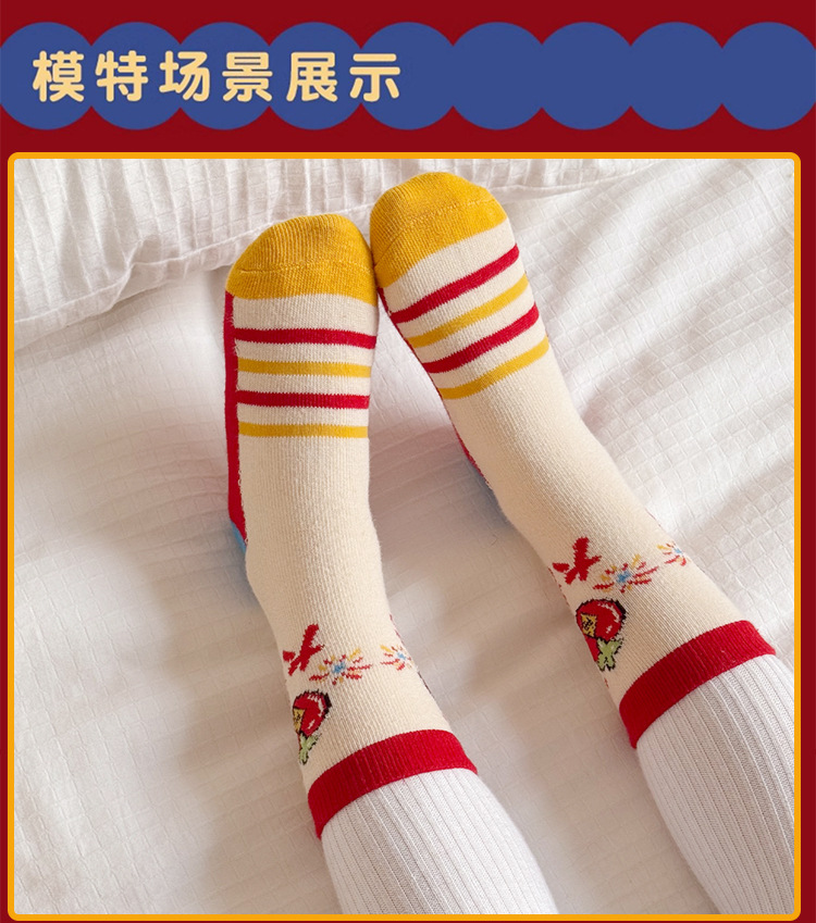 뱀의 해 붉은 새해 양말 대형 어린이 A급 소년 소녀를위한 중간 튜브 양말스토어 가기