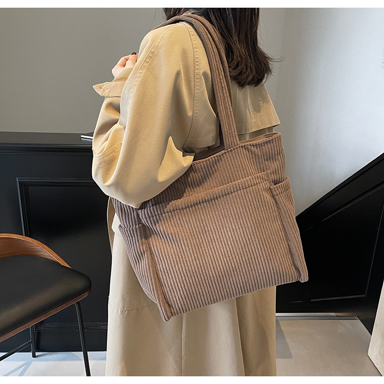 벨벳 캔버스 가방 여성의 2024 가을 및 겨울 새로운 올 매치 대용량 핸드백 학생 어깨 통근 토트 백