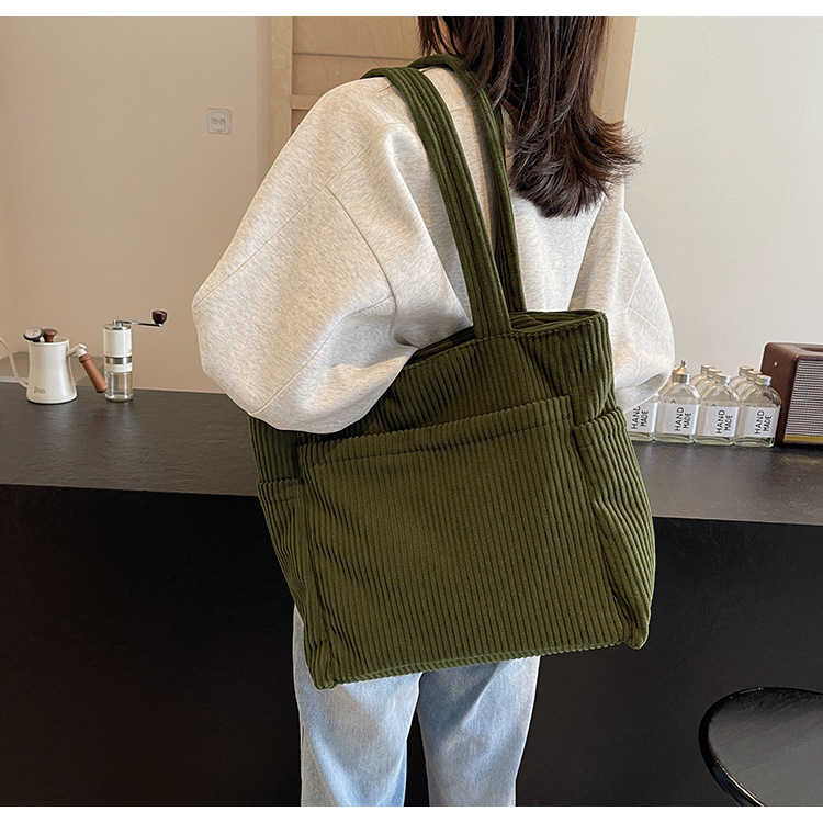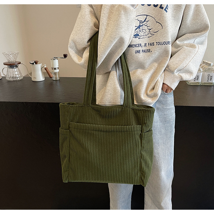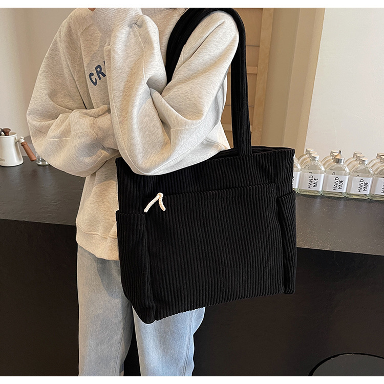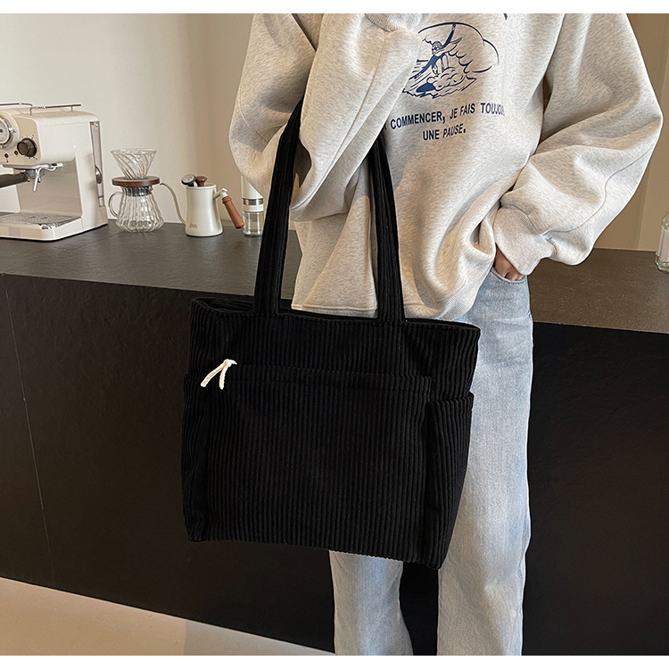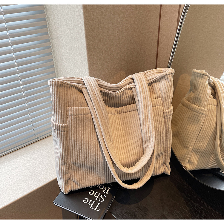 벨벳 캔버스 가방 여성의 2024 가을 및 겨울 새로운 올 매치 대용량 핸드백 학생 어깨 통근 토트 백스토어 가기