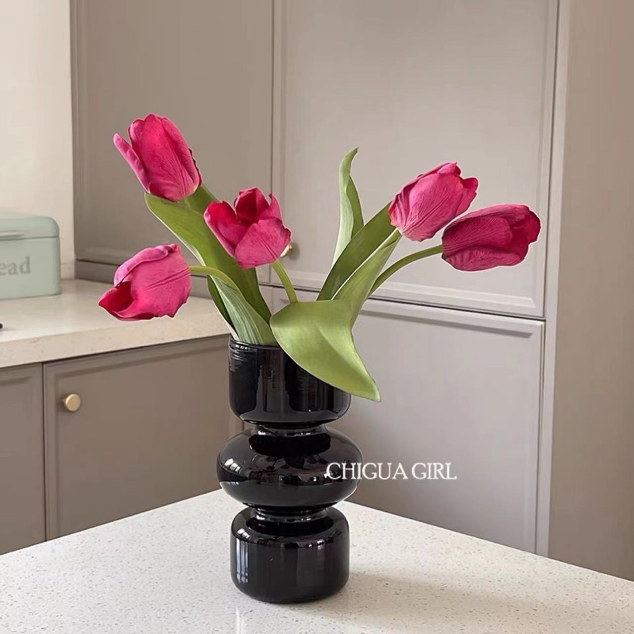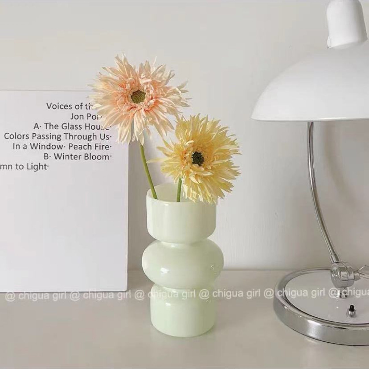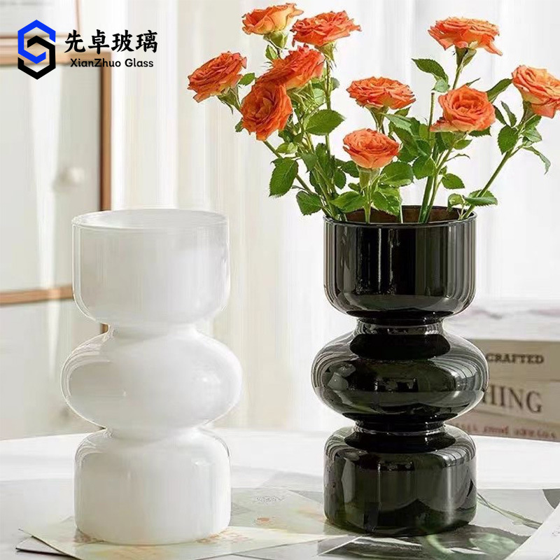 두꺼운 펜튼 고 부가가치 유리 꽃병 프랑스 인 밀크 옥 컬러 거실 꽃 배열 장식품 고급 꽃 감지 장식품스토어 가기