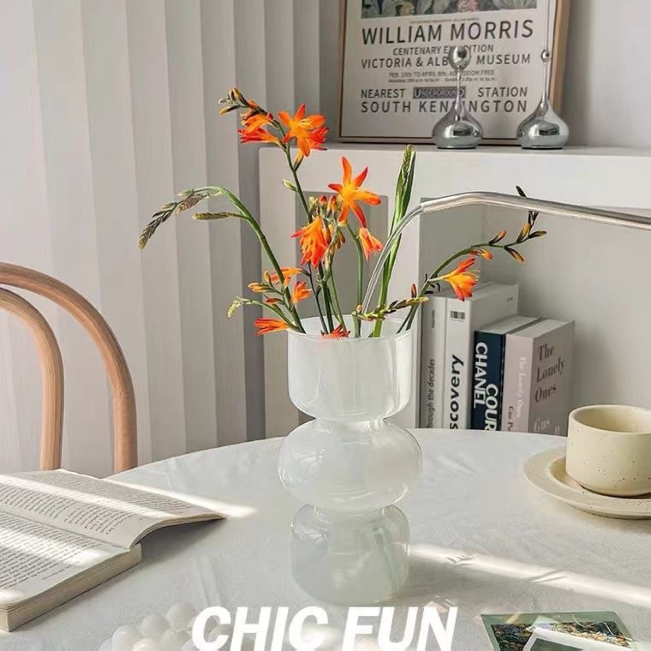 두꺼운 펜튼 고 부가가치 유리 꽃병 프랑스 인 밀크 옥 컬러 거실 꽃 배열 장식품 고급 꽃 감지 장식품